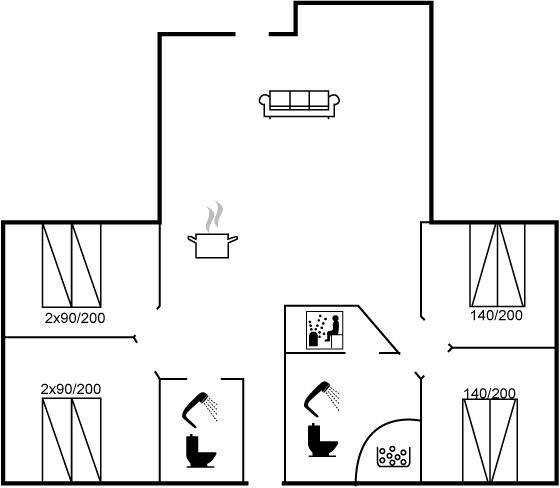 SchlafverhältnisseDie Schlafplätze verteilen sich auf 4 Schlafräume. 4 Schlafplätze in Doppelbetten. 4 Schlafplätze in Einzelbetten. 2 von diesen Schlafplätzen befinden sich im offenen Obergeschoss. Ferner steht ein Kinderbett zur Verfügung.