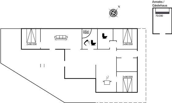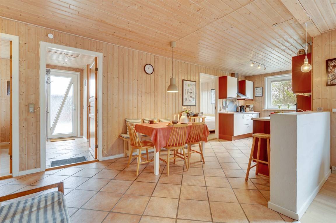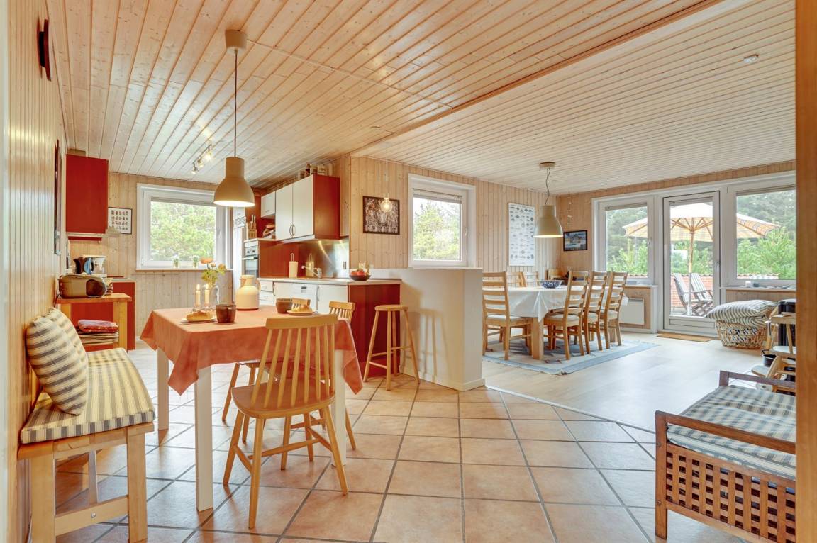 Geräumiges Ferienhaus in einer ruhigen Ferienhausstraße am Rand von Klitmøller. Zum Haus gehört eine tolle, große Terrasse mit Windschutzmauer, sodass Sie so gut wie immer ein geschütztes sonniges Plätzchen finden. Auf dem Grundstück befindet sich zudem ein Gästehaus, das 2 der Schlafplätze beherbergt. Vom Ferienhaus aus ist es nicht weit bis zur Nordsee, wo gute Angel- und Surfmöglichkeiten auf Sie warten – ein wichtiges Markenzeichen von Klitmøller.