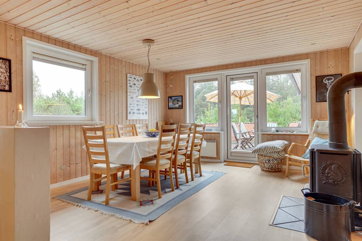 Das Ferienhaus eignet sich für 8 Personen sowie 1 Kleinkind bis zu 3 Jahren. Die Ferienunterkunft hat eine Wohnfläche von 122 m² und wurde 2001 gebaut. 2006 wurde die Ferienunterkunft teilweise renoviert. Es ist erlaubt 1 Haustier mitzubringen. Die Ferienunterkunft ist mit energiesparender Wärmepumpe ausgestattet. Fußbodenheizung in allen Räumen. Die Ferienunterkunft ist mit Waschmaschine ausgestattet. Wäschetrockner. Tiefkühlmöglichkeit mit 60 Liter Nutzinhalt. Es gibt außerdem einen Kaminofen. Für die jüngsten Feriengäste ist 1 Kinderhochstuhl vorhanden.