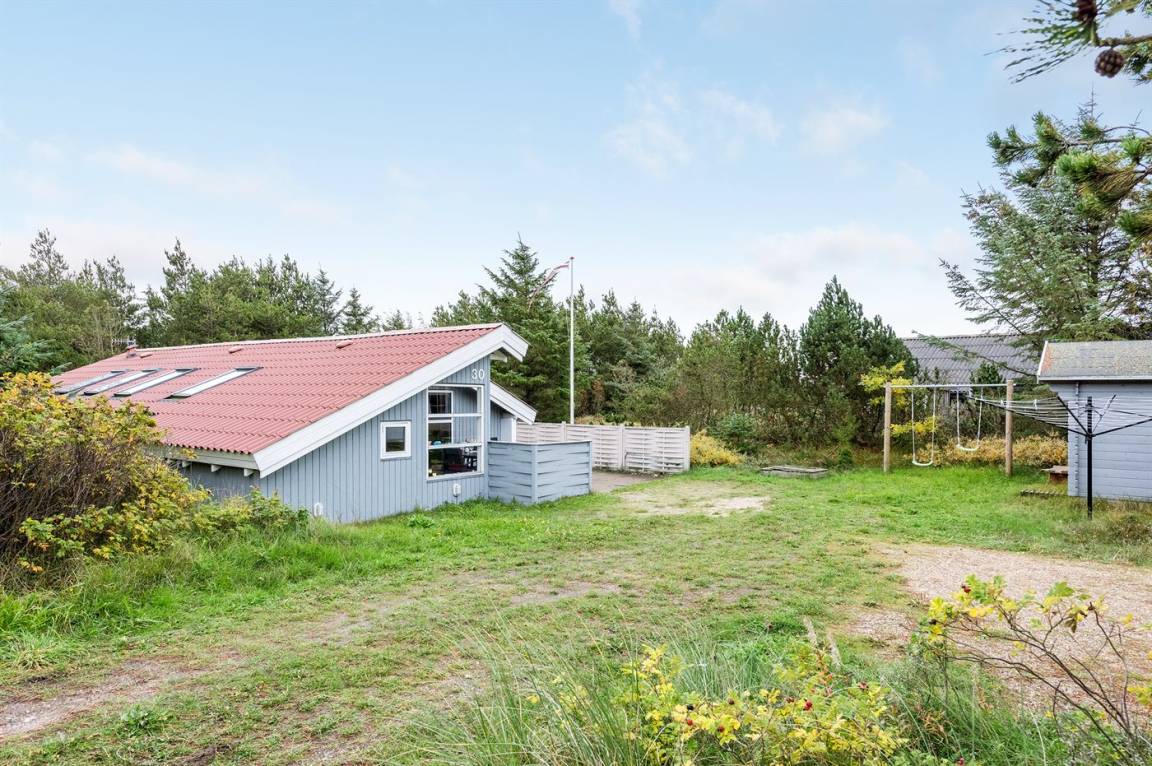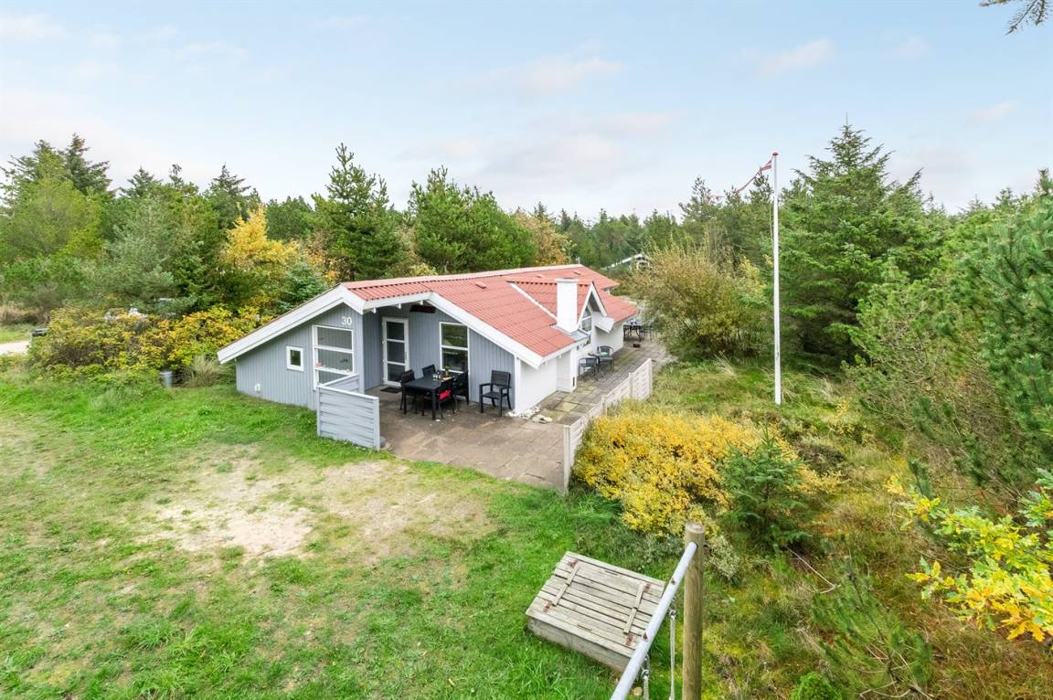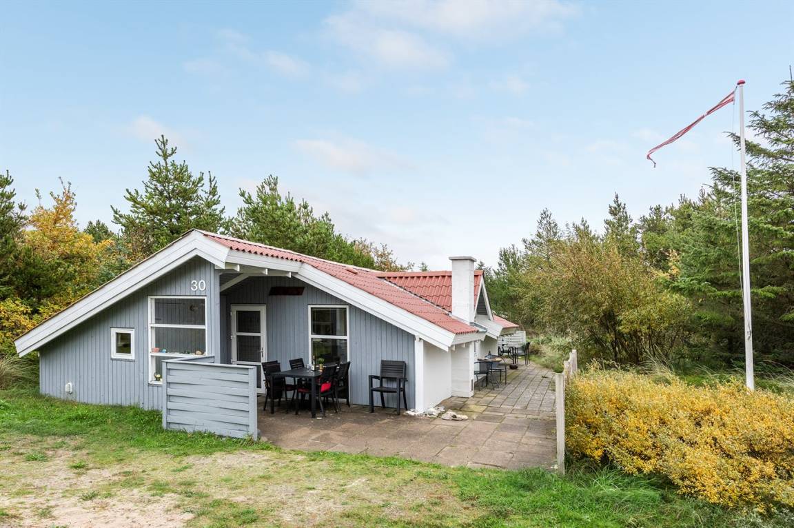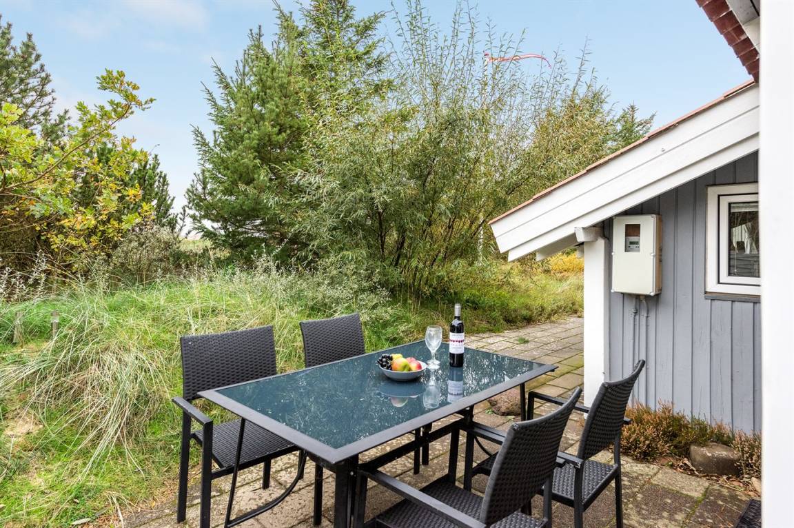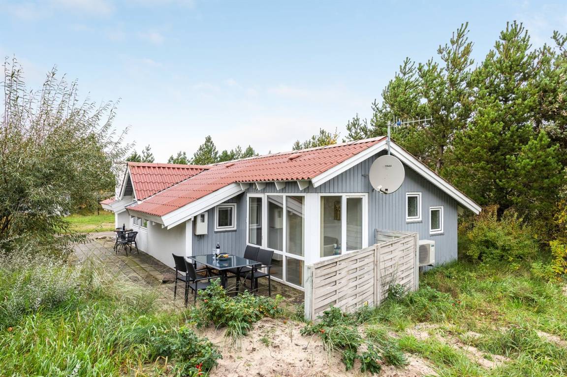 Auf einem mit Heidekraut bewachsenen Naturgrundstück und in ruhiger Umgebung gelegen, finden Sie dieses hübsche Ferienhaus aus Holz, 1971 gebaut und durch die Jahre hindurch renoviert. Zum Haus gehört eine offene Terrasse mit Gartenmöbeln. Geschmackvolle Inneneinrichtung mit nettem Mobilar und großen Fenstern. Kombiniertes Ess- und Wohnzimmer mit Kaminofen, TV und Chromecast. Es ist kabellose Internetverbindung installiert. Die Küche ist u. a. mit Geschirrspüler und Mikrowelle ausgestattet. Badezimmer mit Fußbodenheizung, Duschnische und Waschmaschine. Die Schlafplätze des Hauses verteilen sich auf 1 Zimmer mit Doppelbett und 2 Zimmer mit je 2 Einzelbetten. Kinderhochstuhl vorhanden. Tiefkühlgerät im Geräteraum. Schaukel und Sandkasten auf dem Grundstück. Ein schönes und gepflegtes Ferienhaus.