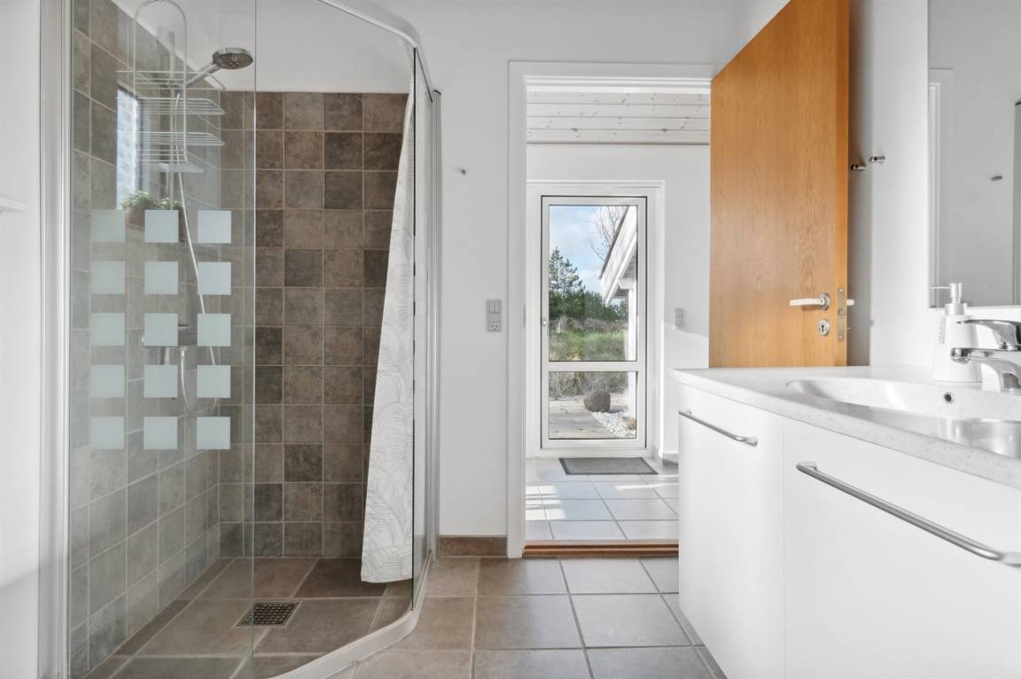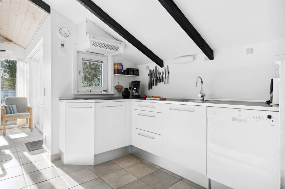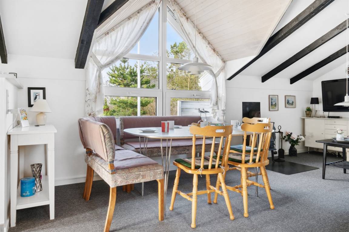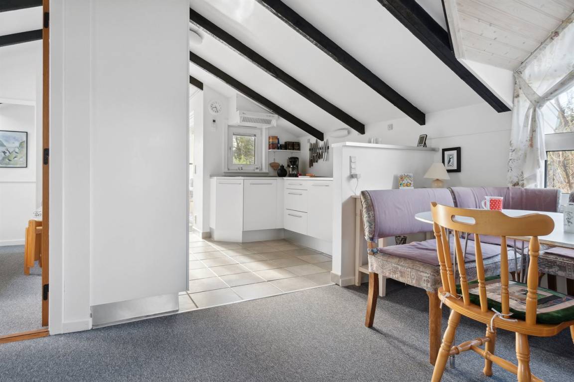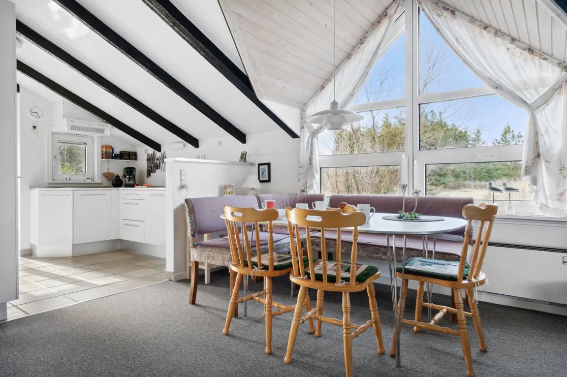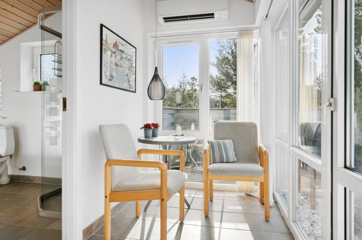 Auf einem mit Heidekraut bewachsenen Naturgrundstück und in ruhiger Umgebung gelegen, finden Sie dieses hübsche Ferienhaus aus Holz, 1971 gebaut und durch die Jahre hindurch renoviert. Zum Haus gehört eine offene Terrasse mit Gartenmöbeln. Geschmackvolle Inneneinrichtung mit nettem Mobilar und großen Fenstern. Kombiniertes Ess- und Wohnzimmer mit Kaminofen, TV und Chromecast. Es ist kabellose Internetverbindung installiert. Die Küche ist u. a. mit Geschirrspüler und Mikrowelle ausgestattet. Badezimmer mit Fußbodenheizung, Duschnische und Waschmaschine. Die Schlafplätze des Hauses verteilen sich auf 1 Zimmer mit Doppelbett und 2 Zimmer mit je 2 Einzelbetten. Kinderhochstuhl vorhanden. Tiefkühlgerät im Geräteraum. Schaukel und Sandkasten auf dem Grundstück. Ein schönes und gepflegtes Ferienhaus.