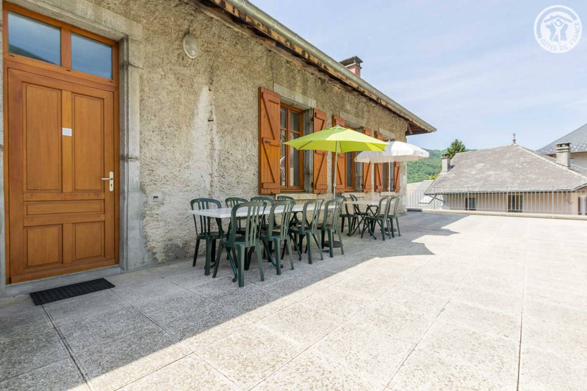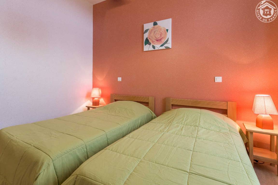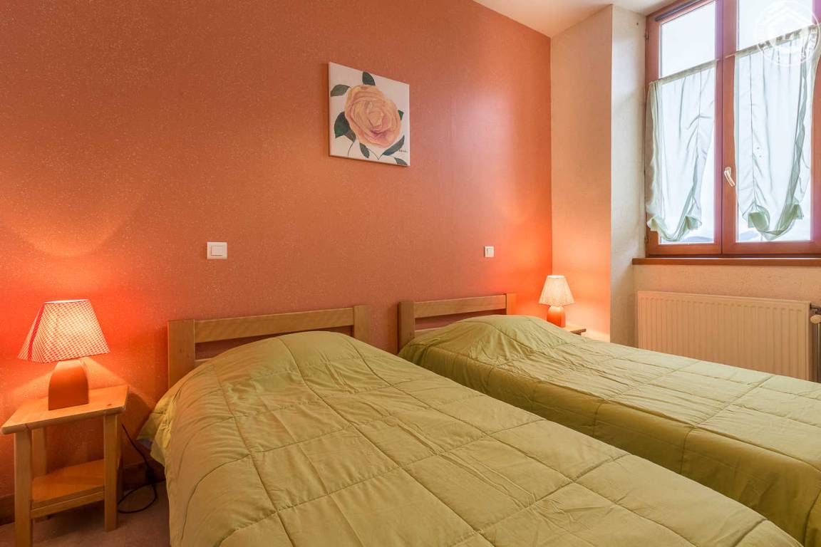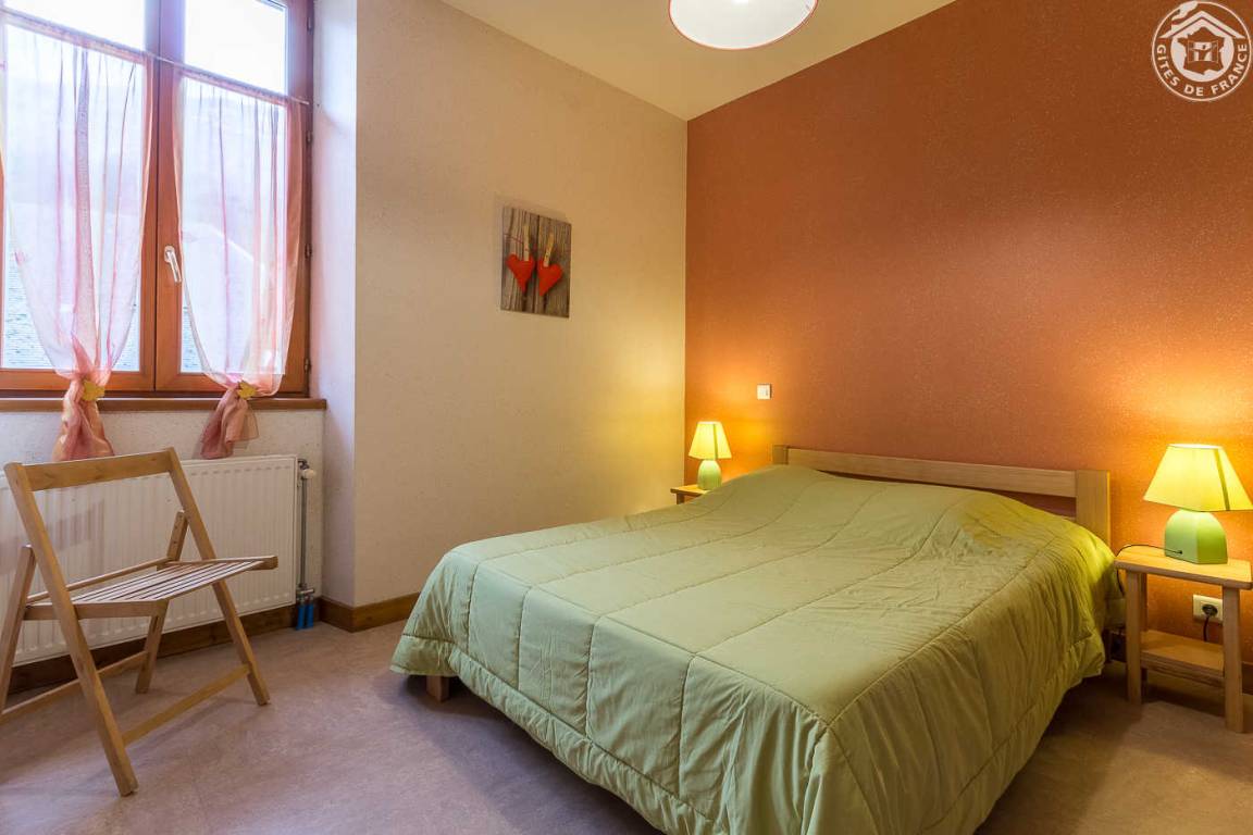 3 Gîtes und Mehrzweckraum im Gebäude. Ferienhaus im 1. Stock (Außentreppe): Wohnküche-Wohnzimmer, 4 Schlafzimmer (1 Doppelbett 140 x 190 cm / 2 Einzelbetten 9 x 190 cm / 3 Einzelbetten 9 x 190 cm / 1 Doppelbett 140 x 190). cm), Badezimmer (Badewanne), Duschbad (Dusche), separates WC. Zentralheizung, Terrasse, Gemeinschaftsgrundstück mit Kegelbahn in 100 m Entfernung, Gemeinschaftsparkplatz unterhalb des Ferienhauses.