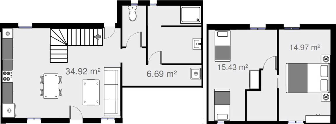 65 m² Gîte ∙ 2 Schlafzimmer ∙ 4 Gäste