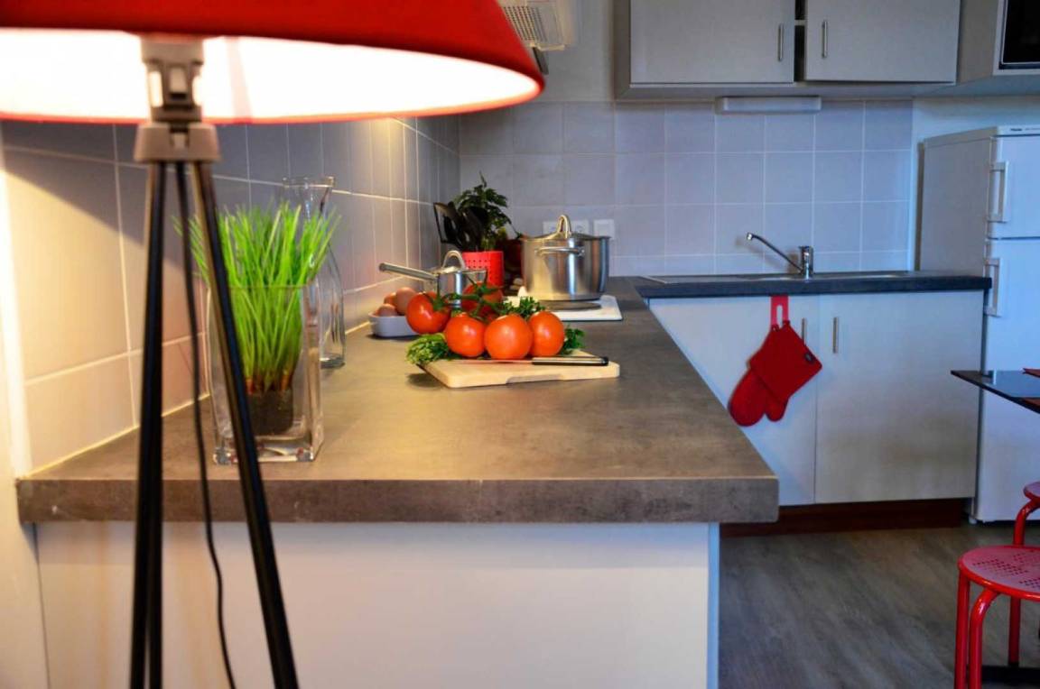 Diese in den Farben von Byrrh dekorierte Wohnung verfügt über eine private Terrasse mit Blick über die Dächer der Stadt: Der Horizont reicht bis zum Canigó-Massiv.