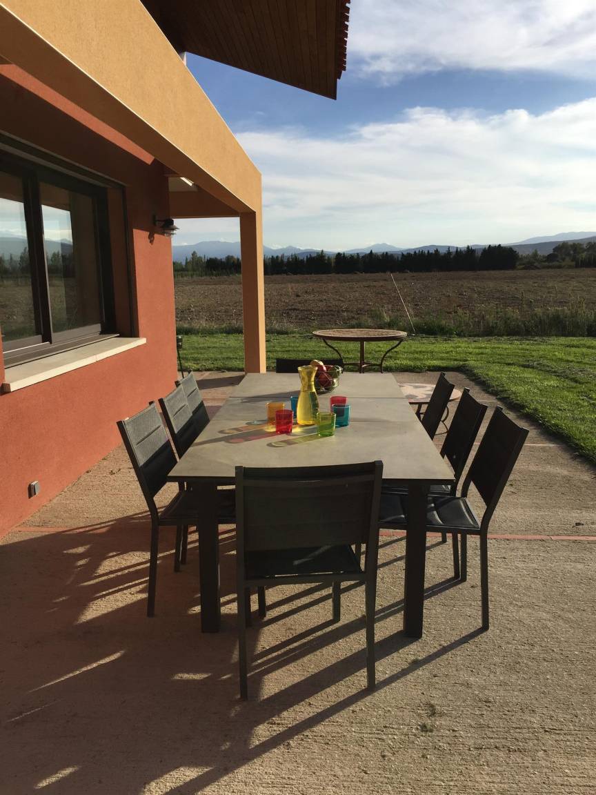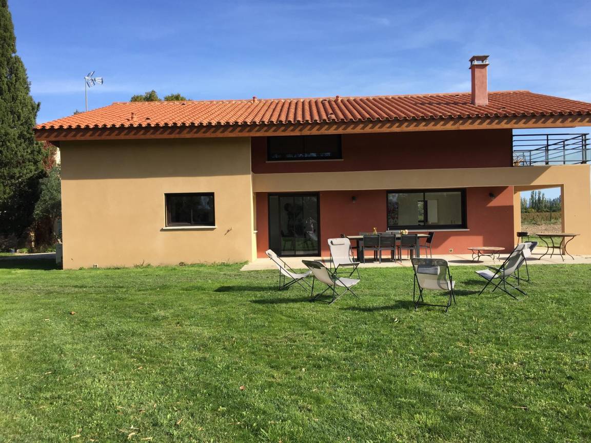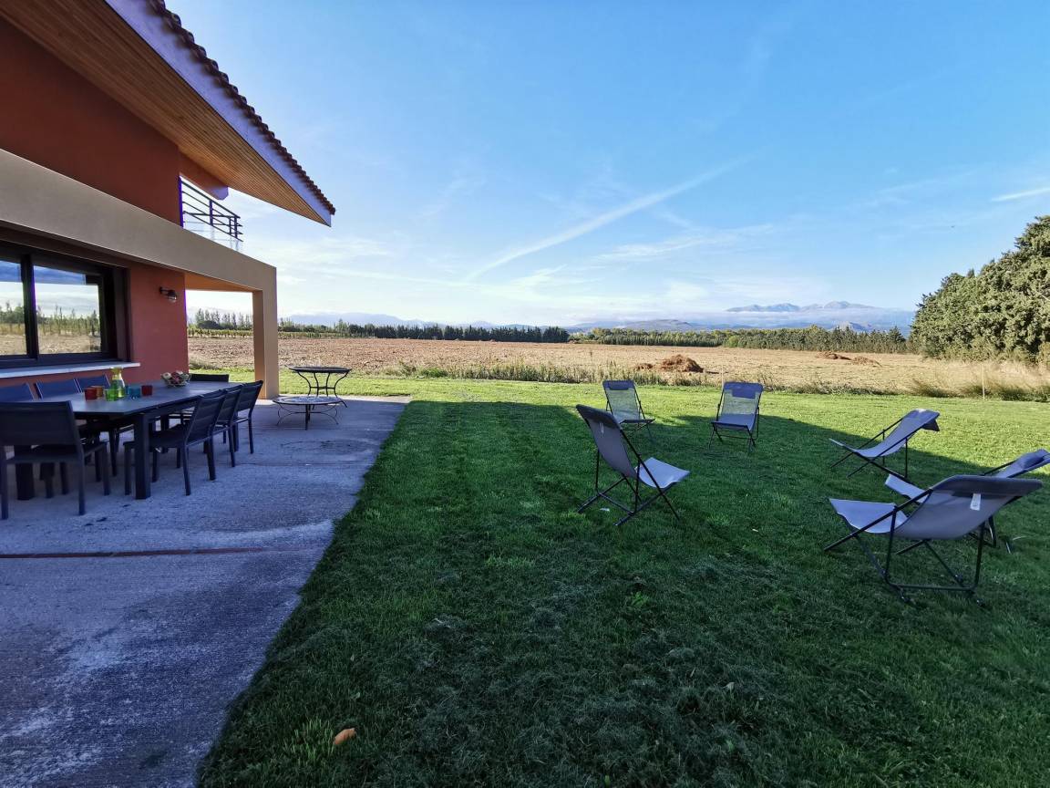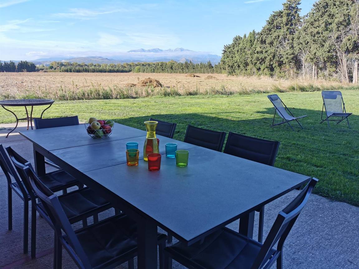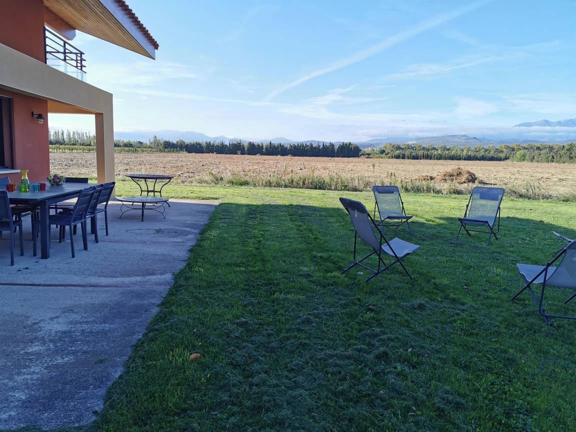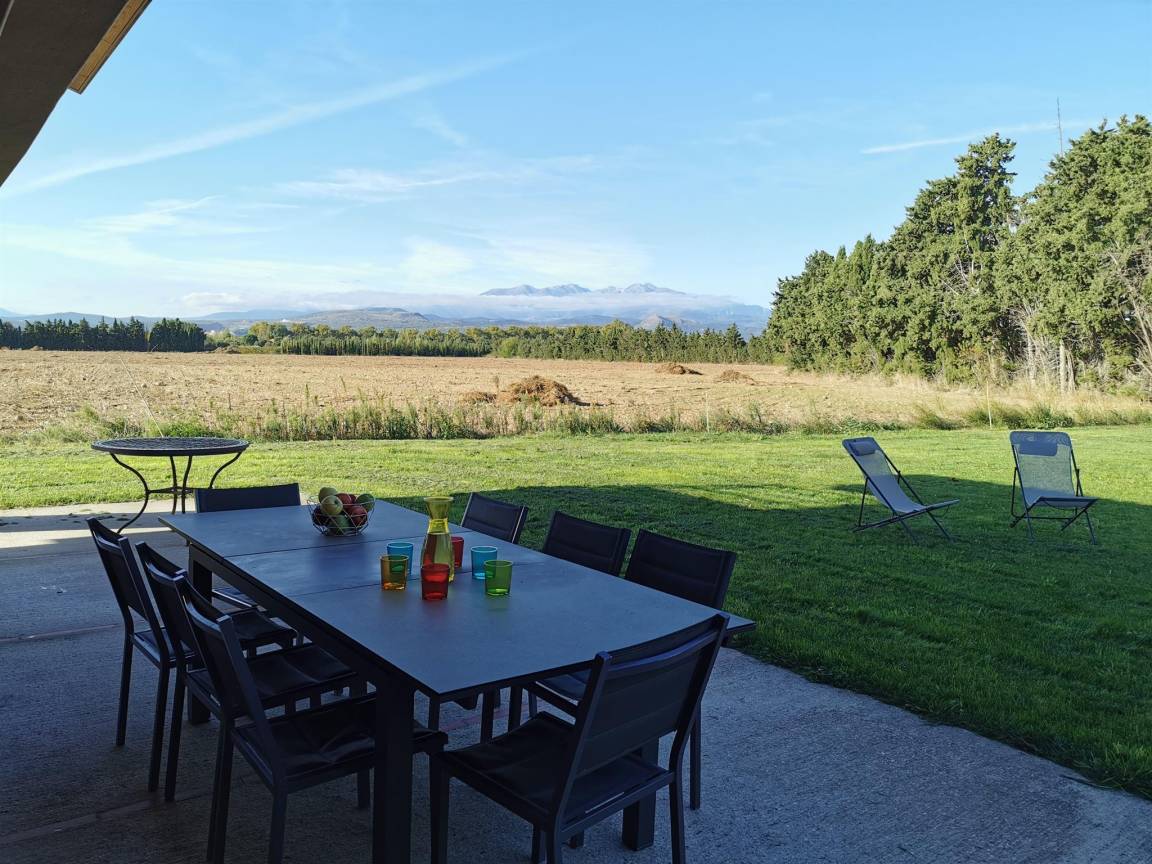 „Vue et maison superbes! Très calme. Aucun vis à vis. La maison est entourée de vergers de pêchers et au loin vue sur le Canigou: Magnifique. Cette grande maison (4 chambres et 4 salles de bain) est très bien équipée, comme une maison d'habitation et non comme une location; il y a tout ce qu'il faut et en nombre dans la cuisine. Il y a même chaise haute, lit bébé et matelas à langer. Machine à laver, (sèche linge pour l'hiver), étendoir et fils à linge permettent de ne pas revenir surchargés en linge sale. La climatisation intégrée lors de la construction est de qualité (uniforme et silencieuse). Belle piscine sécurisée. Et en plus, propriétaire sympathique très arrangeante pour les horaires d'arrivée et de départ.“