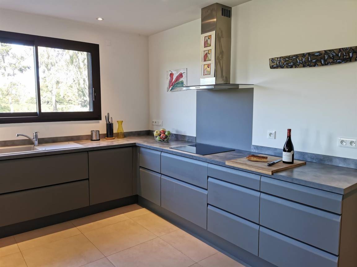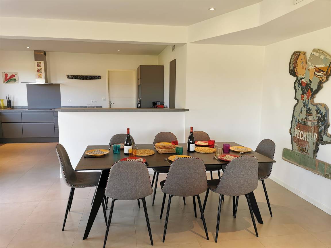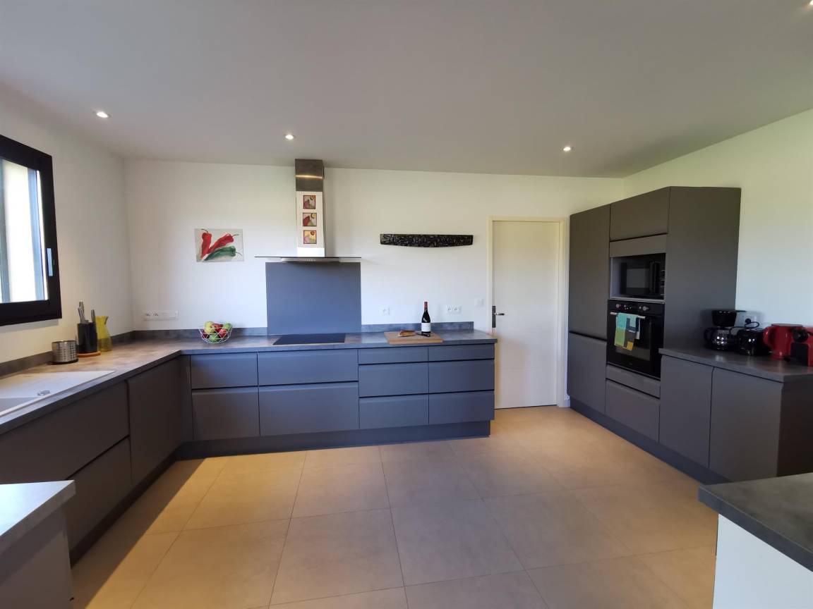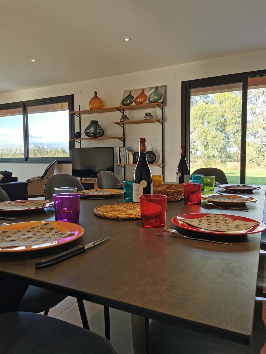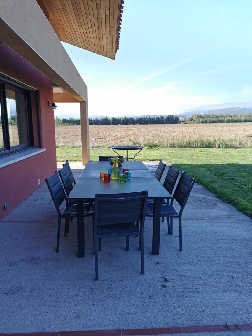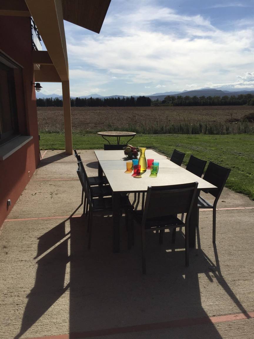 „Vue et maison superbes! Très calme. Aucun vis à vis. La maison est entourée de vergers de pêchers et au loin vue sur le Canigou: Magnifique. Cette grande maison (4 chambres et 4 salles de bain) est très bien équipée, comme une maison d'habitation et non comme une location; il y a tout ce qu'il faut et en nombre dans la cuisine. Il y a même chaise haute, lit bébé et matelas à langer. Machine à laver, (sèche linge pour l'hiver), étendoir et fils à linge permettent de ne pas revenir surchargés en linge sale. La climatisation intégrée lors de la construction est de qualité (uniforme et silencieuse). Belle piscine sécurisée. Et en plus, propriétaire sympathique très arrangeante pour les horaires d'arrivée et de départ.“