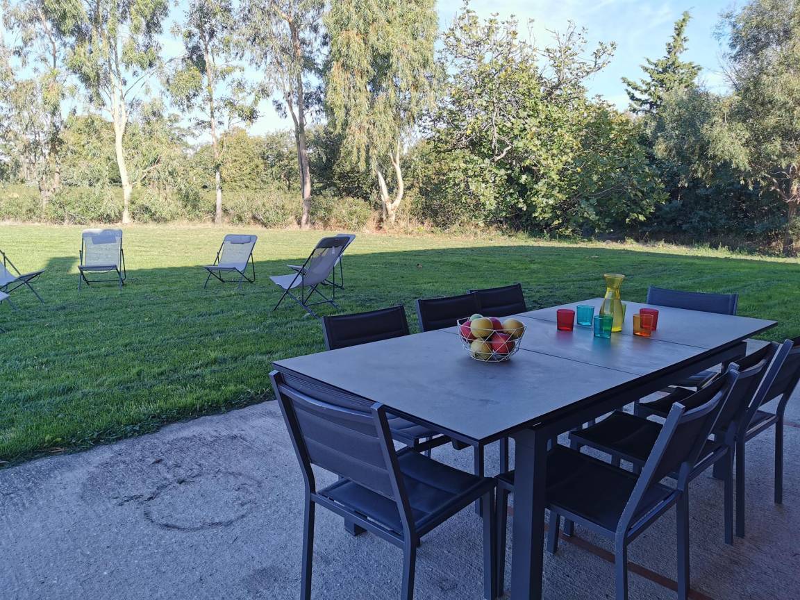 „Très satisfait de notre séjour maison spacieuse et très agréable. En pleine nature au milieu des arbres fruitiers. Accueil parfait avec un cadeau de bienvenue. Merci des 8 amis vacanciers.“