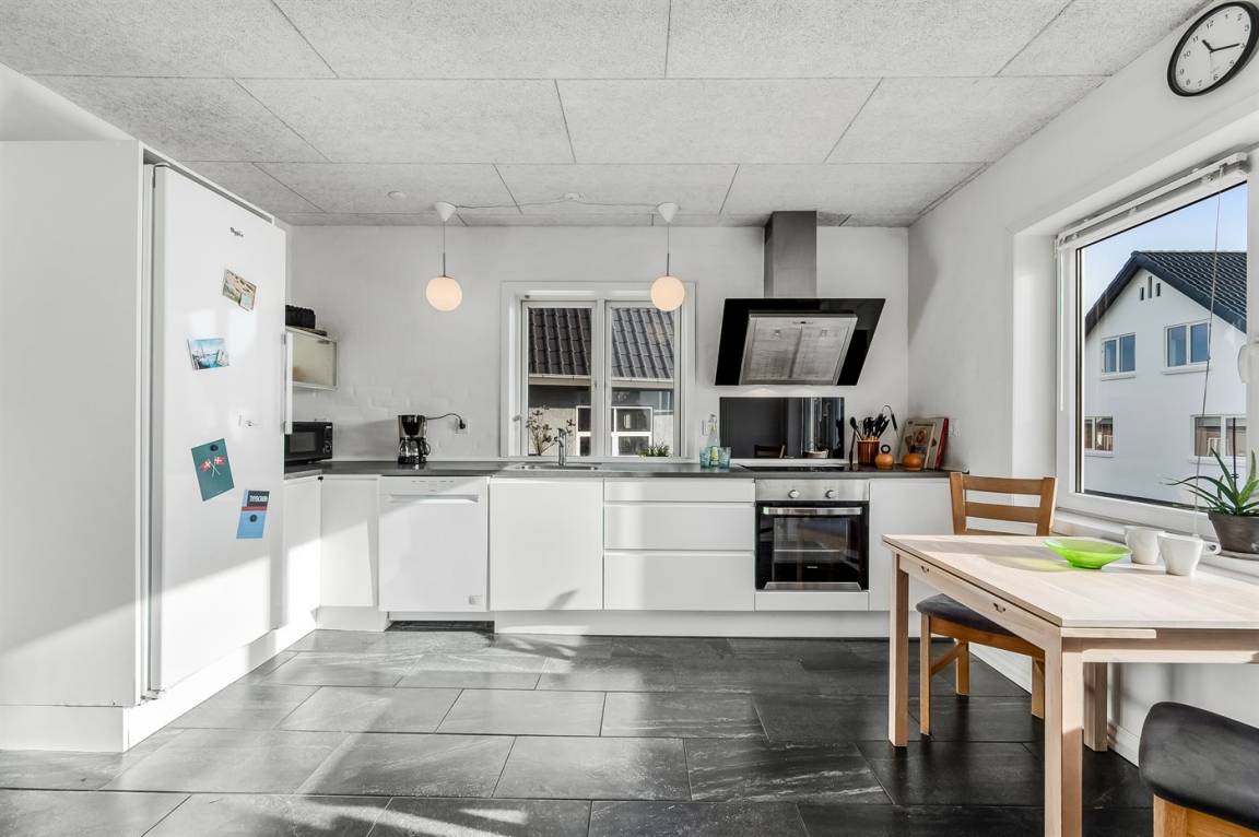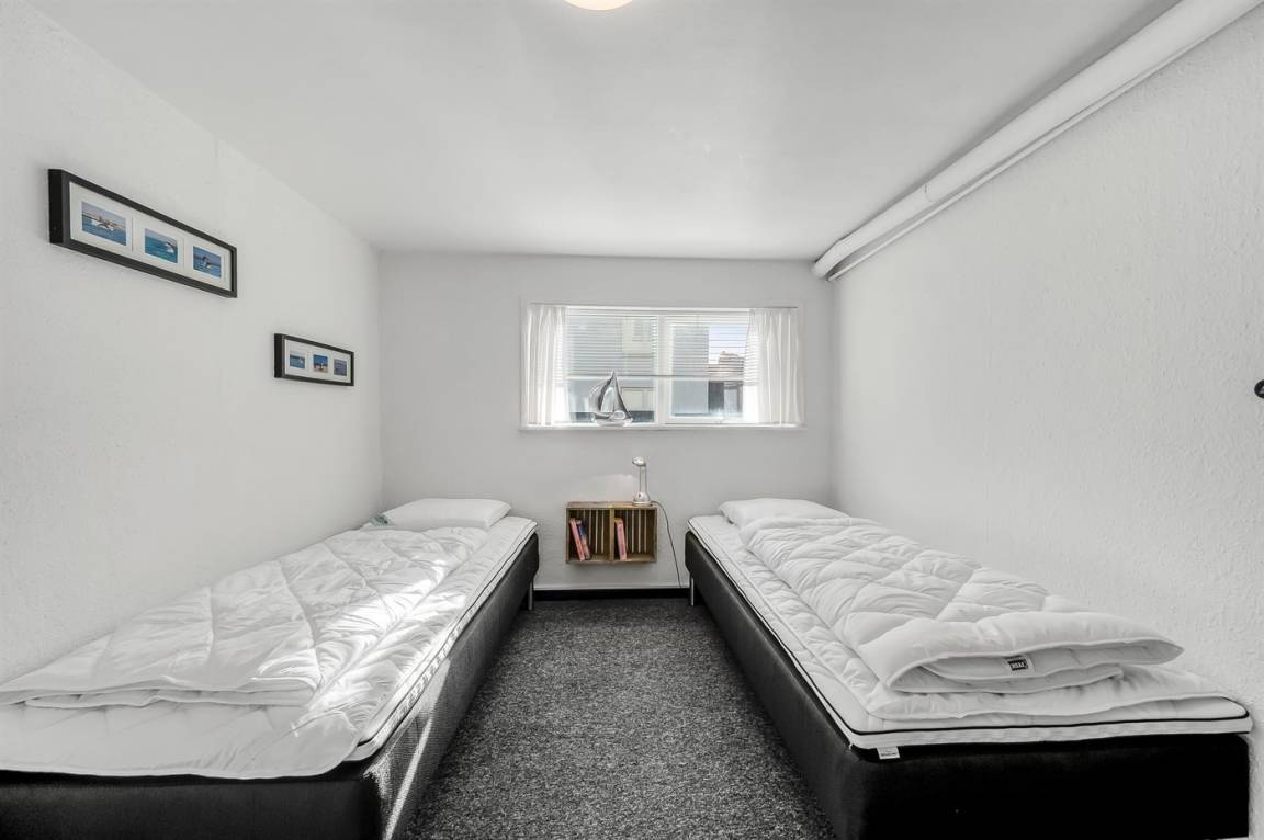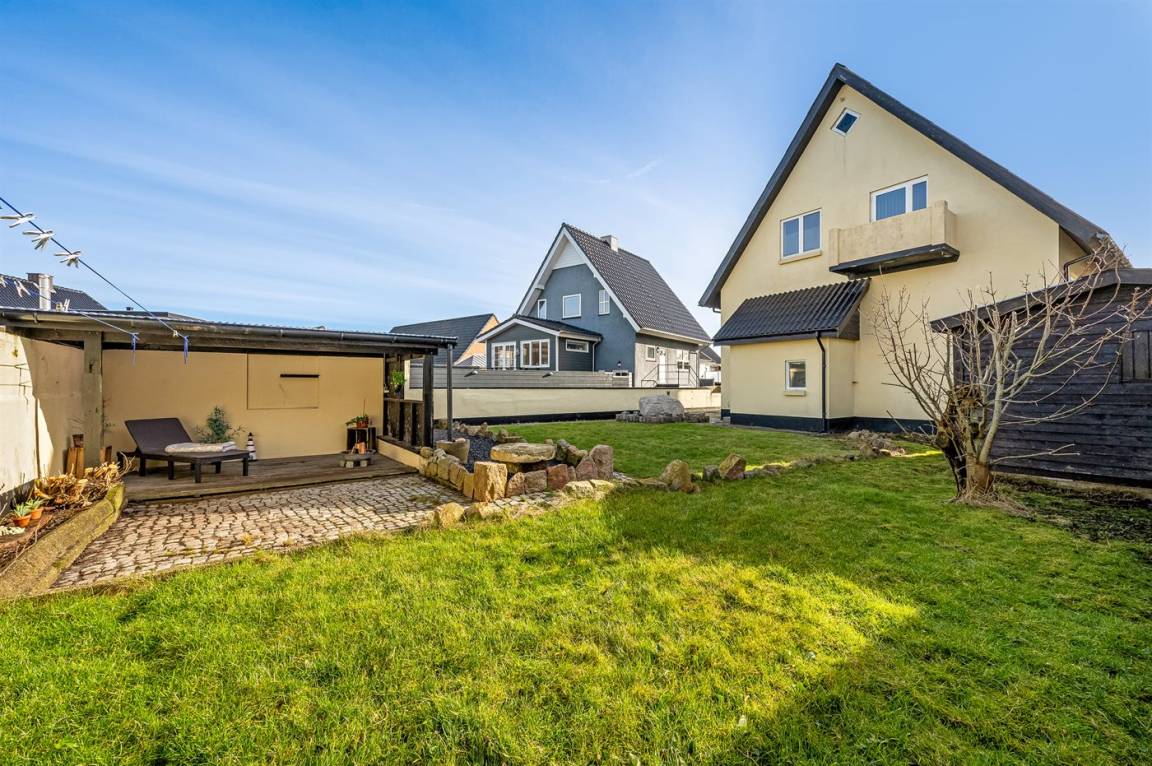 DraußenDie Ferienunterkunft liegt auf einem 337 m² großen Gartengrundstück. Die Entfernung zum Meer beträgt 200 m. Die Entfernung zum Fjord beträgt 200 m. Die nächste Einkaufsmöglichkeit liegt 125 m entfernt. Außerdem gibt es überdachte Terrasse. Geräteraum. Die Entfernung zu einem Spielplatz beträgt 75 m. Es steht ein Grill zur Verfügung. Parkplatz auf dem Grundstück.