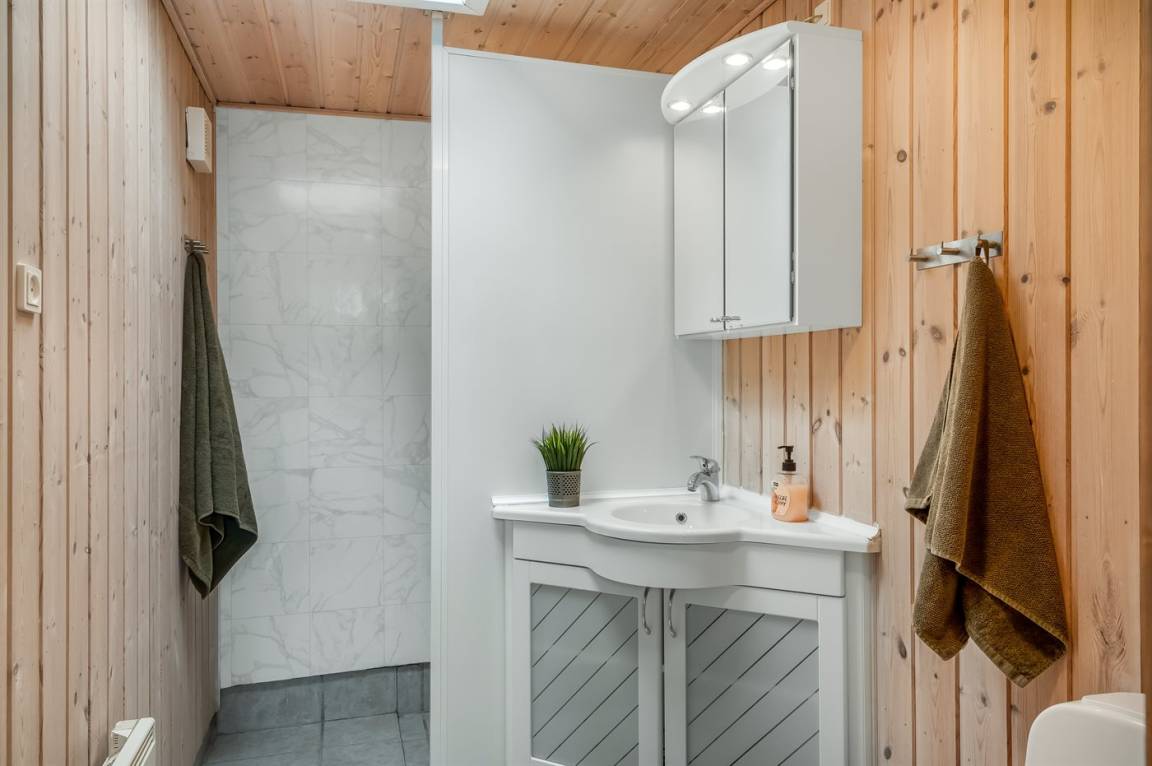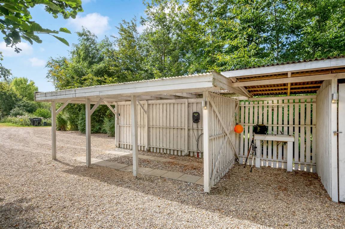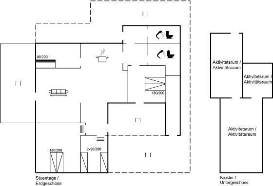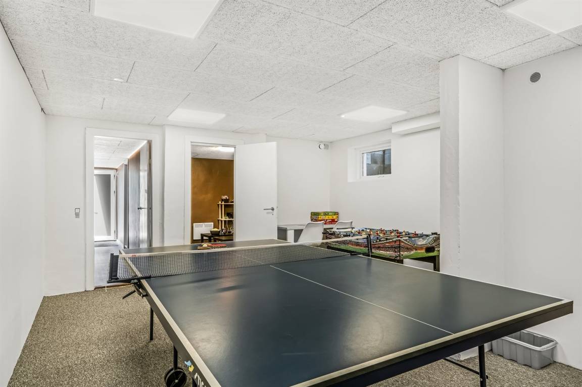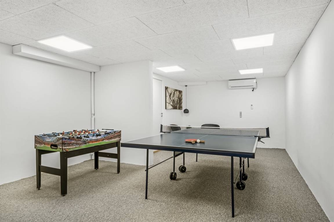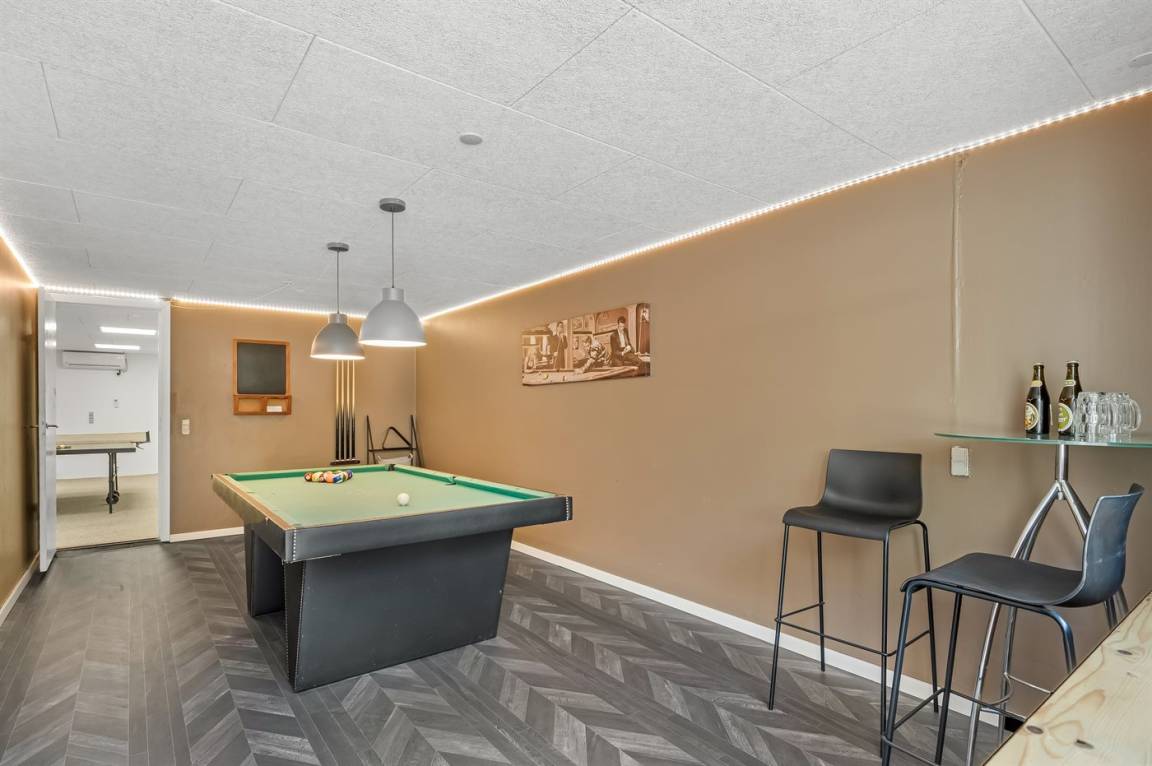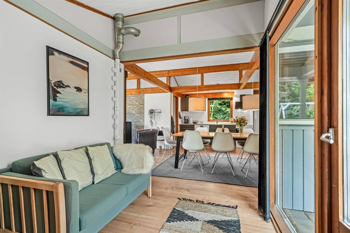 Dieses schöne, neu renovierte Ferienhaus, mit 4 Schlafzimmer und 2 Badezimmer, liegt in einem ruhigen Ferienhausgebiet. Das Haus, mit Hanglage, wurde 2020/21 völlig renoviert. Es gibt eine schöne Wohnküche mit Decken bis zum First, Wärmepumpe und Zugang zu der überdachten Terrasse. Wohnzimmer mit Kaminofen und Zugang zur Aussichtsterrasse, von wo aus Sie den Ausblick auf das Gebiet genießen können. Es gibt 2 schöne Badezimmer, beide mit großer Duschnische, beheizbare Klinkerböden und Badezimmermöbel. In dem einen Badezimmer stehen außerdem Waschmaschine und Wäschetrockner zur Verfügung. Die Schlafplätze verteilen sich auf 4 gute Zimmer; 1 mit Etagenbett, 1 mit 2 Einzelbetten, 1 mit Doppelbett und Ausgang zu der überdachten Terrasse sowie 1 extra großes Zimmer mit Doppelbett und Oberlichtfenster. Internetverbindung mit 150/150 Mbit. Schöne Diele und Flur. Das 70 m² große Kellergeschoss ist mit u. a. Billardtisch, Tischtennis, Tischfußball und Heimkino eingerichtet.