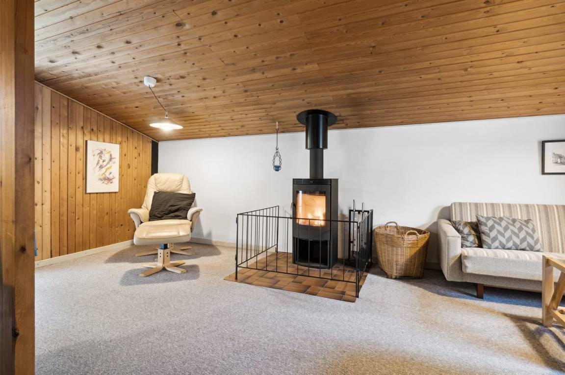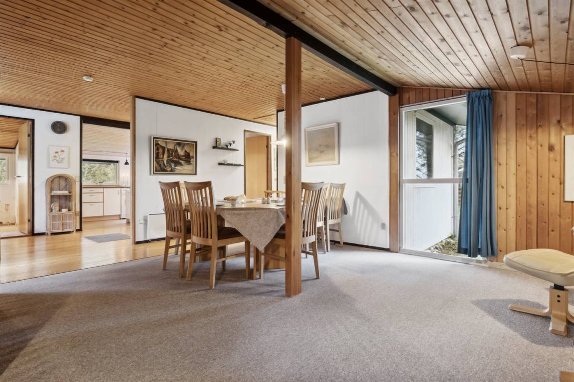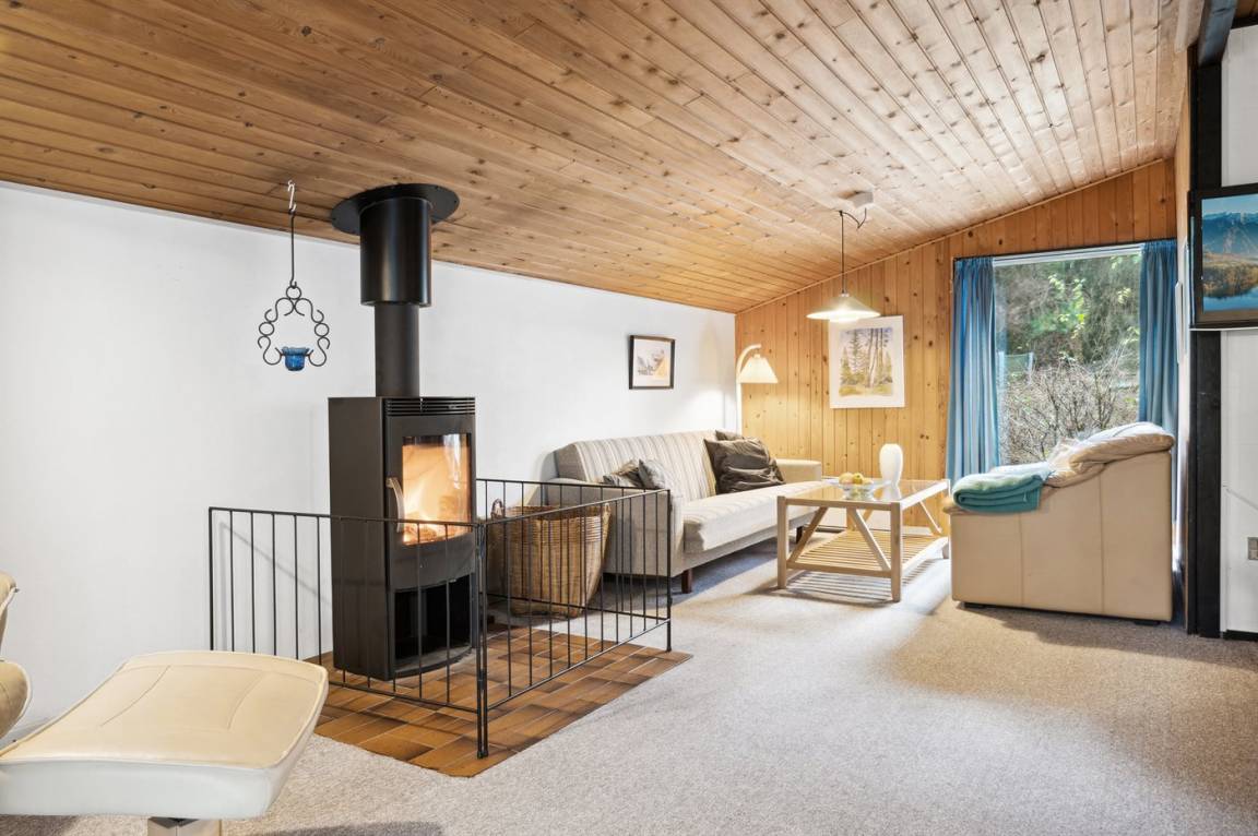 DraußenDie Ferienunterkunft liegt auf einem 2800 m² großen Naturgrundstück. Die Entfernung zum Fjord beträgt 200 m. Die nächste Einkaufsmöglichkeit liegt 6000 m entfernt. In einem Abstand von 6000 m gibt es einen Golfplatz. Außerdem gibt es 20 m² überdachte Terrasse. Geräteraum. Schaukel. Sandkasten. Trampolin. Fußballtor. Es steht ein Grill zur Verfügung. Parkplatz auf dem Grundstück.