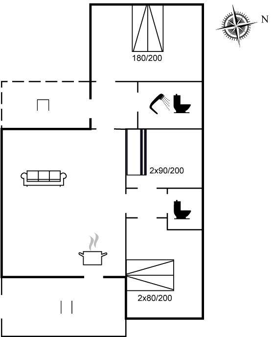 SchlafverhältnisseDie Schlafplätze verteilen sich auf 3 Schlafräume. 4 Schlafplätze in Doppelbetten. 2 Schlafplätze in einem Etagenbett. Ferner steht ein Kinderbett zur Verfügung.