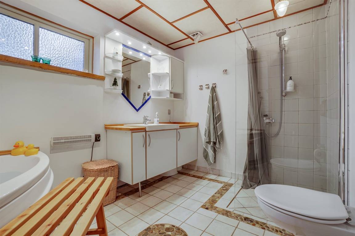 WC und BadEs gibt 1 Badezimmer mit Duschnische und 2 Toiletten, davon 1 Gästetoilette. Fußbodenheizung in 1 Badezimmer.