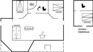 SchlafverhältnisseDie Schlafplätze verteilen sich auf 3 Schlafräume. 4 Schlafplätze in Doppelbetten. 2 Schlafplätze in Einzelbetten.2 Schlafplätze auf Schlafcouchen (einzeln). - 2 von diesen Schlafplätzen befinden sich im Gästehaus and 2 befinden sich im Wohnzimmer. Ferner steht ein Kinderbett zur Verfügung.