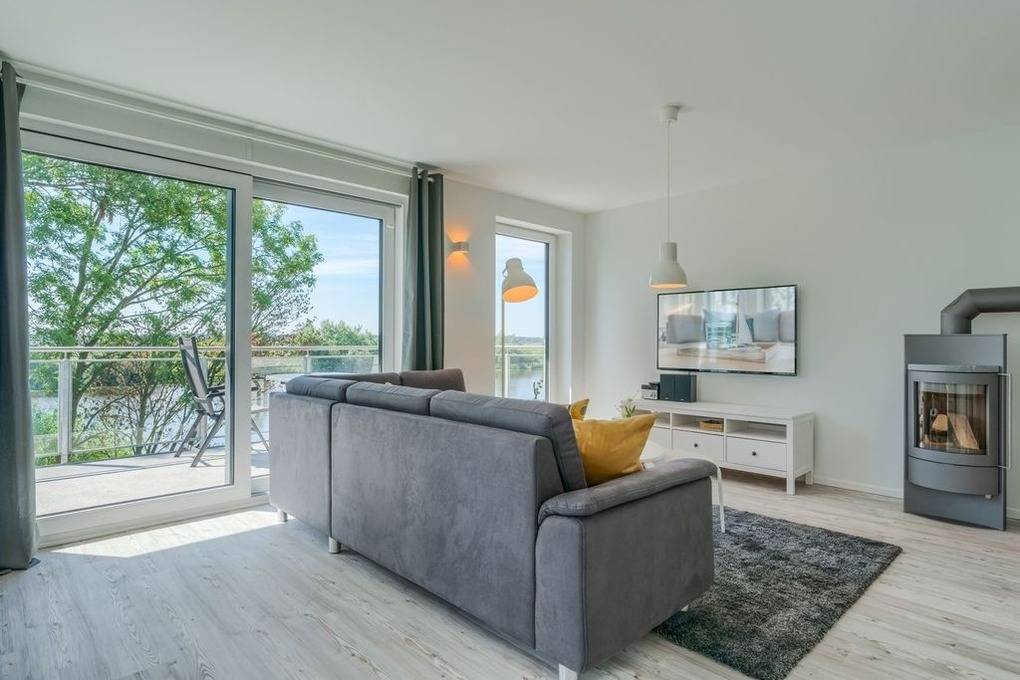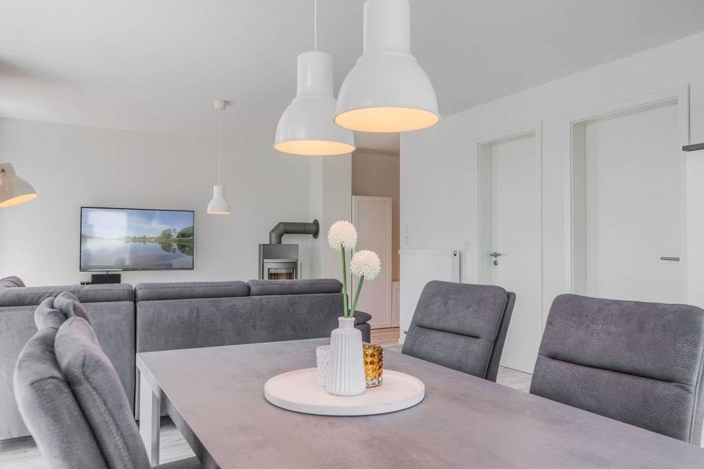 Nach einer erholsamen Nacht begrüßen Sie den Tag mit der Morgensonne, die durch ein bodentiefes Fenster in den Schlafraum scheint. Von hier aus weitet sich der Blick über das benachbarte Bootshaus in die weite Ferne auf für diese Region so typische, unbebaute Moorwiesen und macht Lust auf ausgedehnte Spaziergänge und Radtouren.