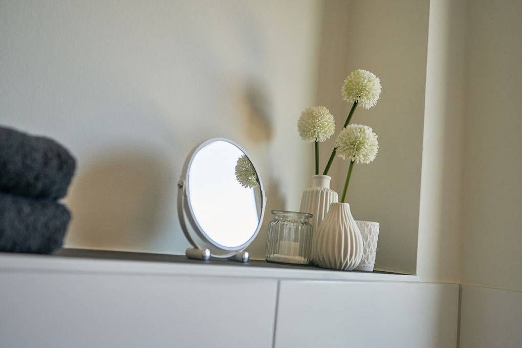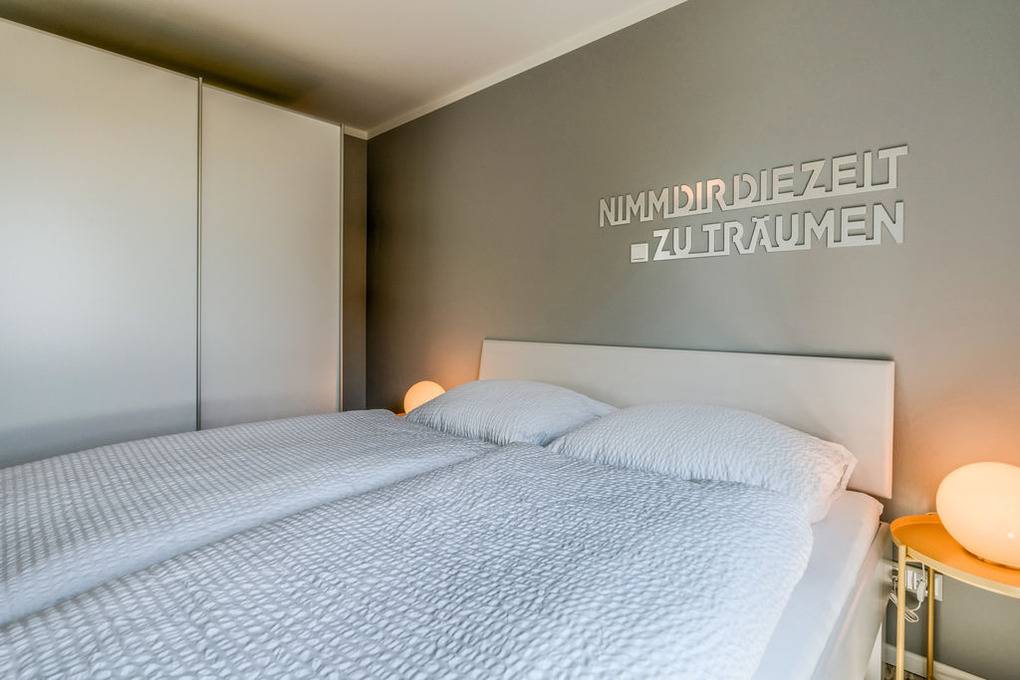 Auszeit, die Sinne ruhen lassen, diese Möglichkeit bietet sich Ihnen besonders gut im Schlafraum. Hier haben wir bewusst auf das Anbringen von Spiegel und TV verzichtet, um Ihnen ein angenehmes Übergleiten in den Schlaf zu ermöglichen.