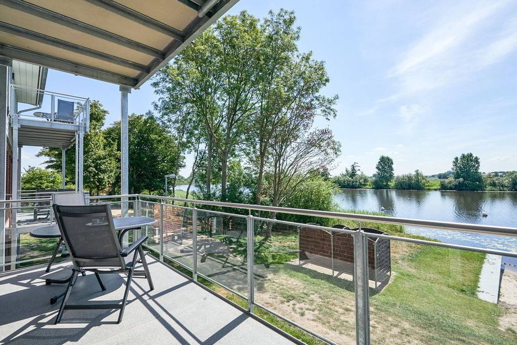 Bereits beim Frühstücken können Sie den Blick auf die Eider genießen und Pläne für den Tag schmieden. Bei gutem Wetter verlegen Sie Ihren Tagesbeginn einfach auf den Balkon, nehmen in den bequemen Gartenstühlen Platz und trinken dort in Ruhe Ihren Kaffee. Durch die windschützende Glasfront des Balkons über der leichten Hanglage ist Ihnen der freie Blick auf die Natur garantiert.