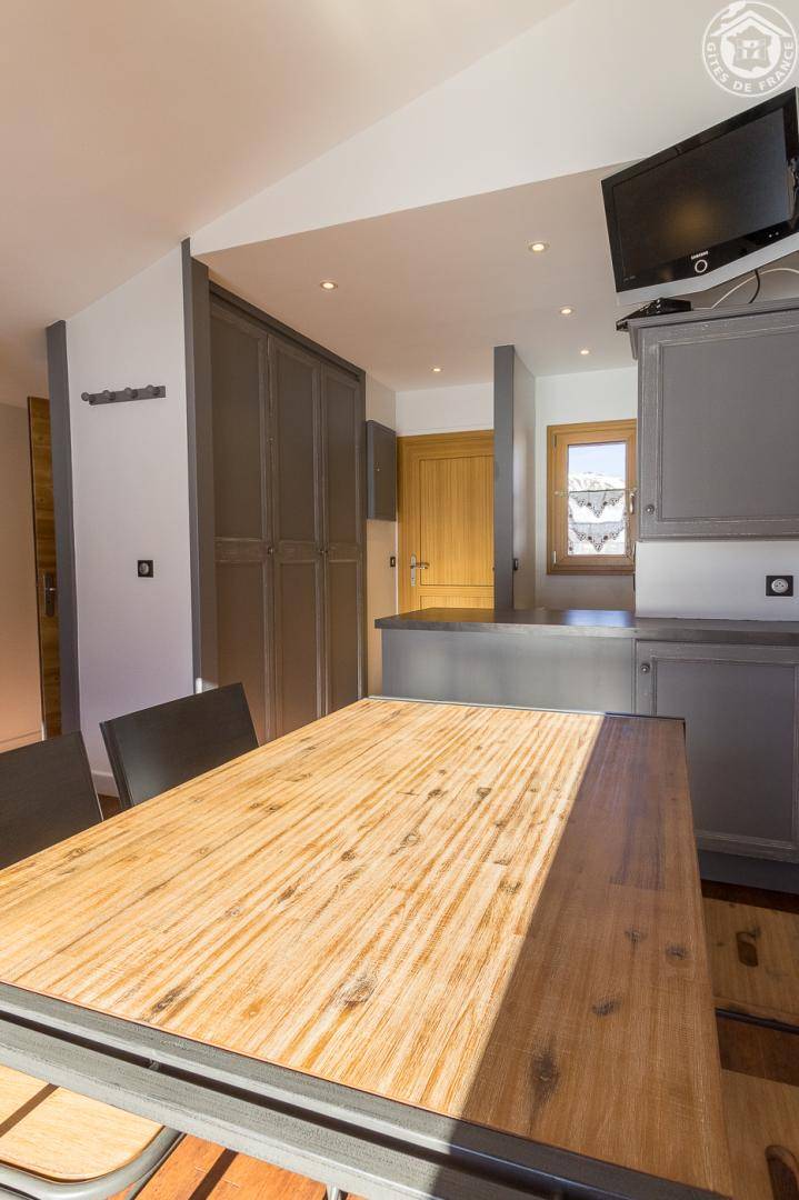6 Gîtes + Unterkunft des Eigentümers in einem Chalet. 1. Stock: Wohnzimmer-Küchen-Loungebereich (2 Einzel-Ausziehbetten), WLAN, 1 „Kabinen"-Schlafzimmer (2 Einzel-Etagenbetten), Badezimmer (Badewanne). Balkon. Gemeinschaftsgrundstück + Privatparkplatz nur im Sommer. Skifahren Tignes/Espace Killy auf 200m. Langlauf 100m. Golfen vor Ort. Schwimmbad auf 500m. Nautischer Basissee 100m.