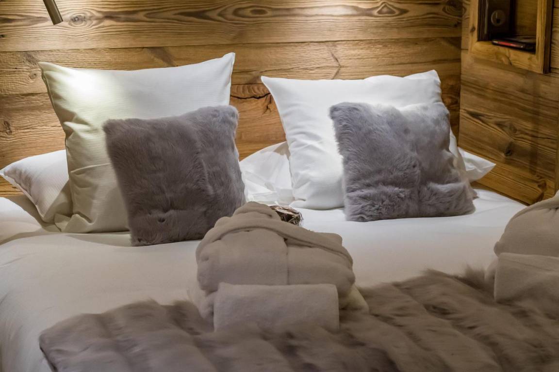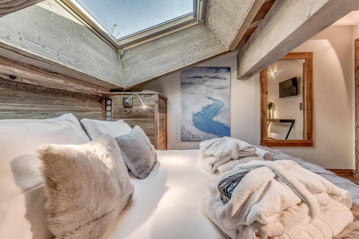 Fläche von ungefähr 124 m². Orientierung : Süd, West. Blick skipisten und Berg (Dome de la Sache). Niveau 0 : Wohnzimmer. 2 Schlafzimmer mit 2 Einzelbetten. Kochnische mit Wasserkocher, Kaffeemaschine, Backofen, Toaster, Dunstabzugshaube, Geschirrspülmaschine, Mikrowellenherd, 4 Induktionsherdplatten, Kühlschrank. Waschküche mit Waschmaschine. Waschräume mit Dusche, Haartrockner, Handtuchtrockner, WC. Badezimmer mit Badewanne, Haartrockner, Handtuchtrockner, WC. separates WC. Terrasse. Niveau 1 : 2 Schlafzimmer mit 2 Einzelbetten. Schlafzimmer mit Einzelbett. Waschräume mit Dusche, Handtuchtrockner. Waschräume mit Dusche, Haartrockner, Handtuchtrockner, WC.