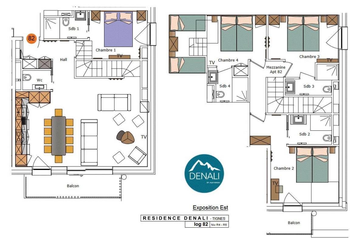 Die Besonderheit des Denali zeigt sich in seinem Wasserbereich mit Schwimmbecken, Planschbecken, Sauna, Hammam und Whirlpool, in dem Sie den Tag entspannt und fit ausklingen lassen können. Fläche von ungefähr 115 m². 4te Etage. Orientierung : Ost. Niveau 0 : Wohnzimmer mit . Schlafzimmer mit Doppelbett (160*200), , Haartrockner. Küche mit Kaffeemaschine (filtre et Nespresso), , Backofen, Geschirrspülmaschine, Mikrowellenherd, 2 Glaskeramikkochfelder, Kühl-Gefrier-Kombination. separates WC. Balkon. Niveau 1 : Schlafzimmer mit 2 zwei Einzelbetten (90*200), , WC. Schlafzimmer mit 2 Einzelbetten (90*200), 2 zwei Einzelbetten (90*200), , WC. Schlafzimmer mit , 2 zwei Einzelbetten (90*200), , WC.