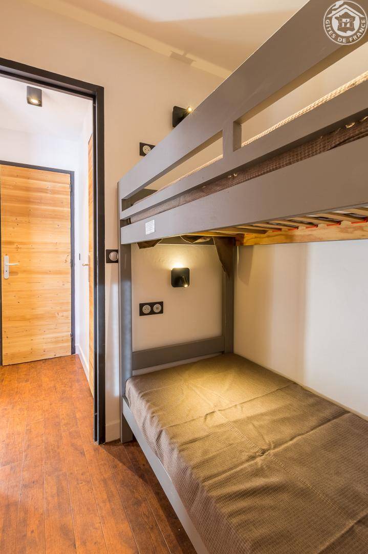 6 Gîtes + Unterkunft des Eigentümers in einem Chalet. 1. Stock: Wohnzimmer-Küchen-Loungebereich (2 Einzel-Ausziehbetten), WLAN, 1 „Kabinen"-Schlafzimmer (2 Einzel-Etagenbetten), Badezimmer (Badewanne). Balkon. Gemeinschaftsgrundstück + Privatparkplatz nur im Sommer. Skifahren Tignes/Espace Killy auf 200m. Langlauf 100m. Golfen vor Ort. Schwimmbad auf 500m. Wassersportbasis und See 100 m entfernt.