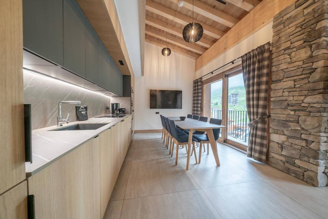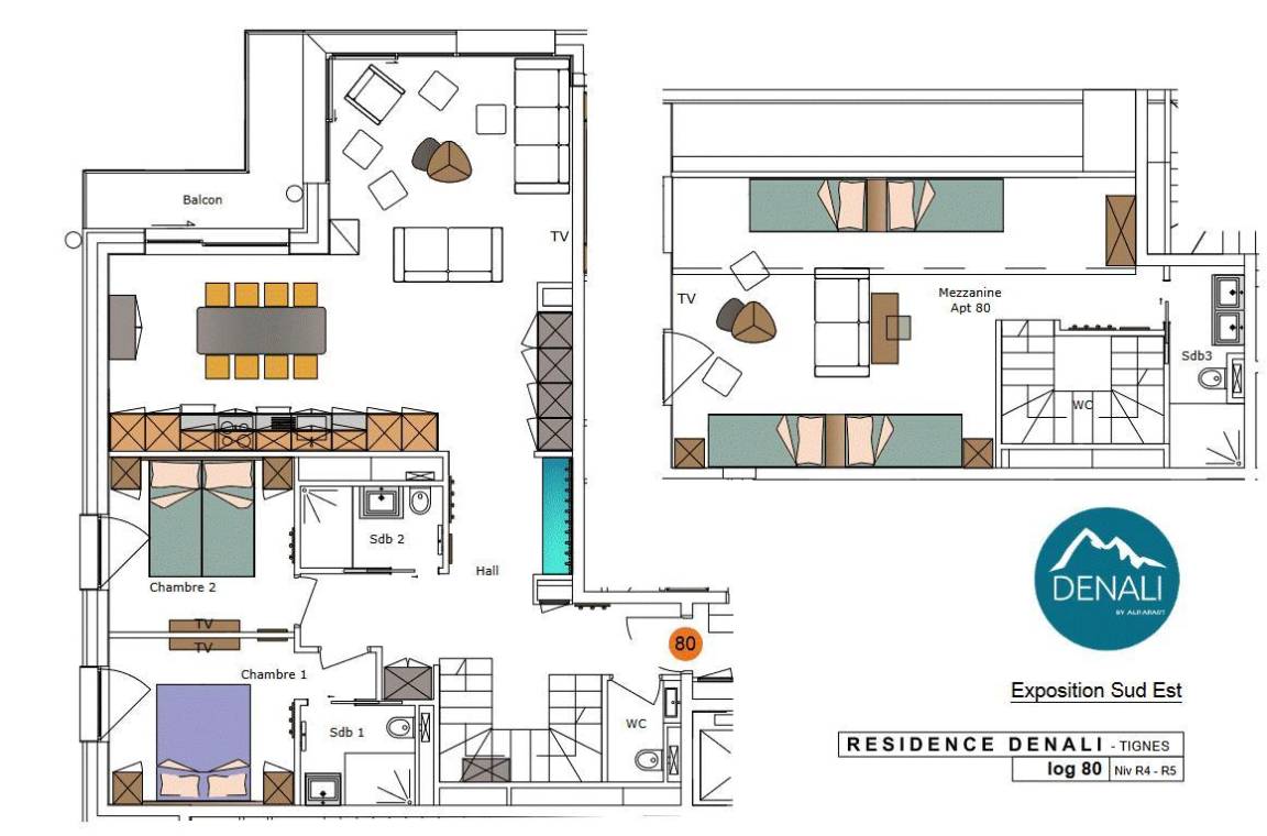 Die Besonderheit des Denali zeigt sich in seinem Wasserbereich mit Schwimmbecken, Planschbecken, Sauna, Hammam und Whirlpool, in dem Sie den Tag entspannt und fit ausklingen lassen können. Fläche von ungefähr 115 m². 4te Etage. Orientierung : Süd-Ost. Niveau 0 : Wohnzimmer mit . Schlafzimmer mit Doppelbett (160*200), , WC. Schlafzimmer mit 2 zwei Einzelbetten (90*200). Küche mit Kaffeemaschine (filtre et Nespresso), , Backofen, Geschirrspülmaschine, Mikrowellenherd, 2 Glaskeramikkochfelder, Kühl-Gefrier-Kombination. Badezimmer mit Haartrockner, WC. separates WC. Niveau 1 : kleines Wohnzimmer mit Sofa, TV. Zwischengeschoss mit 4 Einzelbetten. Badezimmer mit WC. Balkon.