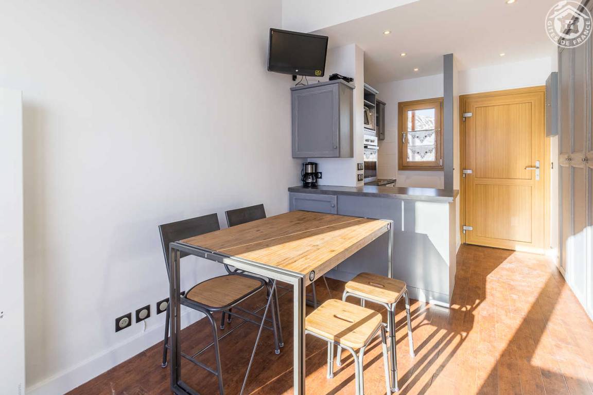 6 Gîtes + Unterkunft des Eigentümers in einem Chalet. 2. Stock: Wohnzimmer-Küchen-Loungebereich (2 Einzel-Ausziehbetten), WLAN, 1 „Kabinen"-Schlafzimmer (2 Einzel-Etagenbetten), Badezimmer (Badewanne). Balkon. Gemeinschaftsgrundstück + Privatparkplatz nur im Sommer. Skifahren Tignes/Espace Killy auf 200m. Langlauf 100m. Golfen vor Ort. Schwimmbad auf 500m. Wassersportbasis und See 100 m entfernt.