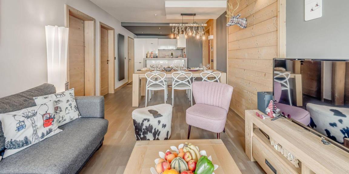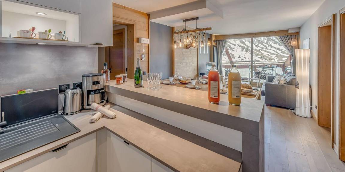 Die Residenz Phoenix in Tignes Le Lac wurde kürzlich vollständig renoviert und verfügt über 27 4-Sterne-Apartments. Jedes Apartment von hohem Standard hat eine eigene Sonnenterrasse mit atemberaubender Aussicht auf Tovière, den See und den Gletscher Grande Motte. Die Residenz liegt in der Nähe der Pisten, alle Geschäfte und Dienstleistungen, die Skischule, Tignespace (Sportzentrum), Le Lagon (Wasser- und Fitnesszentrum) liegen 200 m von der Residenz entfernt. Fläche von ungefähr 75 m². 6te Etage. Orientierung : Süd. Blick see und Berg. Wohnzimmer. Schlafzimmer mit Doppelbett (160*200), . Schlafzimmer mit Doppelbett (160*200). offener Schlafbereich mit 2 Stockbetten (80*200). Kochnische mit Wasserkocher, Kaffeemaschine (Nespresso), Backofen, Toaster, Geschirrspülmaschine, Mikrowellenherd, 2 Induktionsherdplatten, Kühlschrank. Waschräume mit Haartrockner, WC. separates WC. Waschmaschine. Die oberen Betten sind nicht für Kinder unter 6 Jahren geeignet.