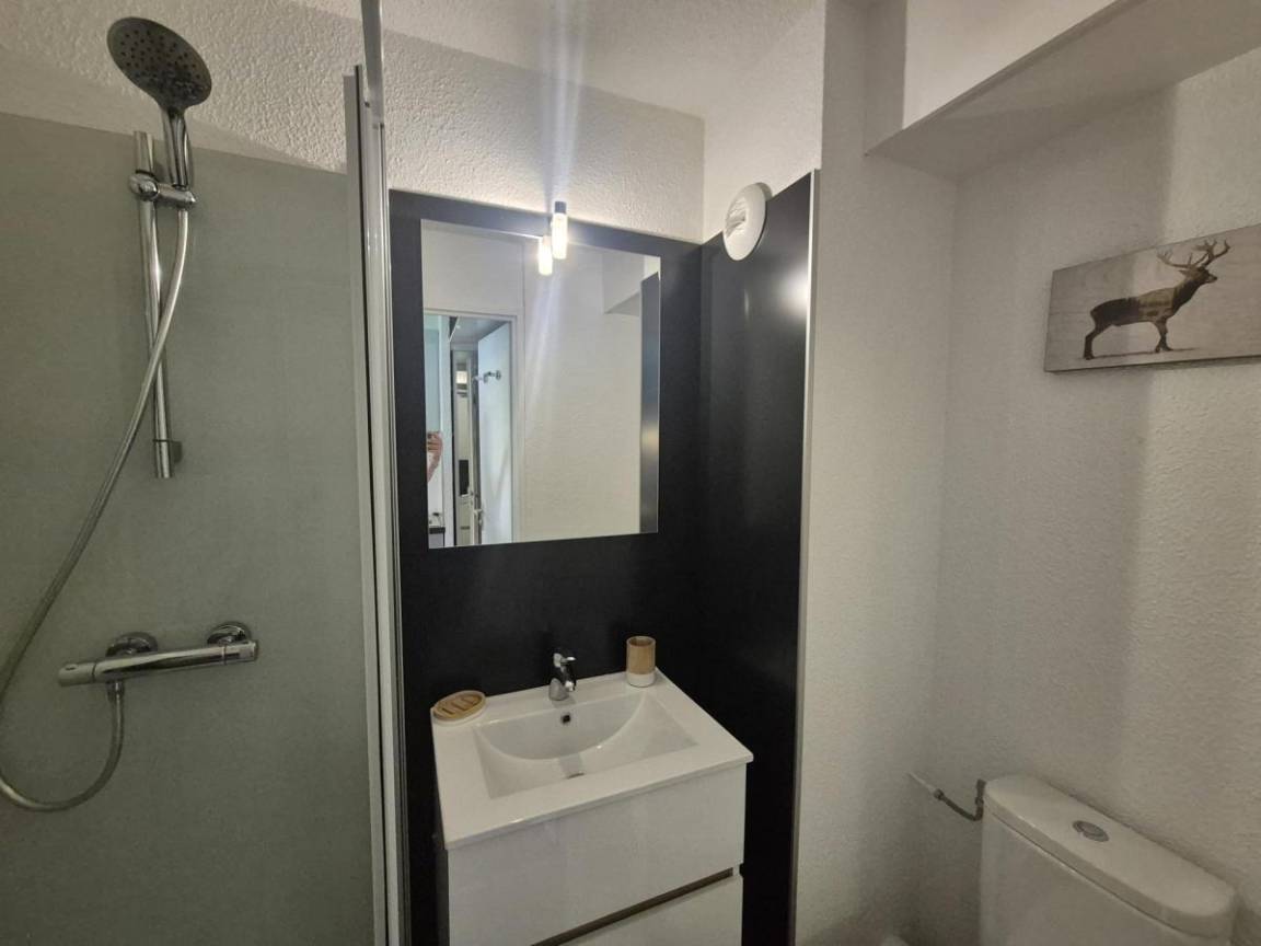 Die Residenz Rond point des pistes A hat eine ideale Lage im Viertel Grande Motte in Tignes Val Claret. Diese Residenz liegt am Fuße der Skipisten und der Standseilbahn, die Sie in wenigen Minuten zum Gletscher de la Grande Motte auf über 3.000 Metern Höhe bringt. Geschäfte und das Resortzentrum liegen 100 m von der Residenz entfernt. Fläche von ungefähr 15 m². 3te Etage. Orientierung : Ost. Wohnzimmer mit Klappschlafcouch (140*190), einfaches Mezzanine Bett. Kochnische mit Mikrowellenherd, Glaskeramikkochfelder, Kühlschrank. Waschräume mit Dusche, WC. Balkon.