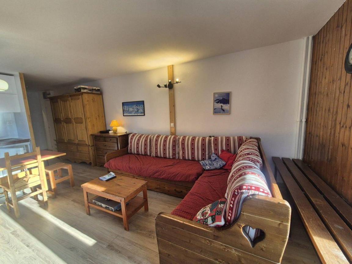 Residenz mit Aufzug. Fläche von ungefähr 35 m². Etage -3. Wohnzimmer mit Ausziehschlafcouch für 2 Personen (2 couchages simples), Klappschlafcouch für 1 Person. Schlafzimmer mit Doppelbett. offene Küche mit Backofen, Geschirrspülmaschine, Mikrowellenherd, 2 Glaskeramikkochfelder, Kühlschrank. Badezimmer mit Waschmaschine. separates WC. Balkon.