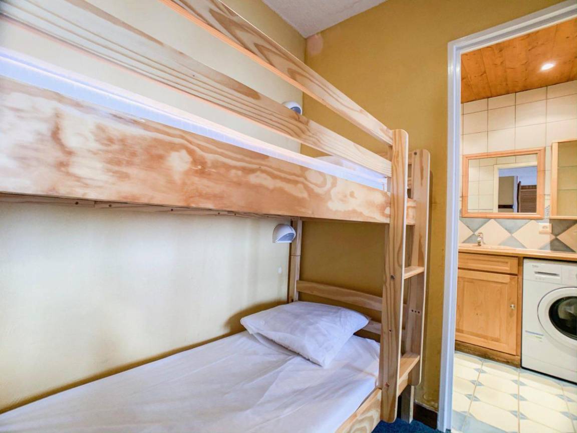 Die Residenz Curling B1-B2 mit 5 Stockwerken und Aufzügen befindet sich im Herzen von Val Claret Haut, neben den Geschäften. Die Skilifte und Skipisten liegen 200 m von der Residenz entfernt. Fläche von ungefähr 37 m². 4te Etage. Orientierung : Süd. Wohnzimmer mit Ausziehschlafcouch für 2 Personen. Schlafzimmer mit Doppelbett. offener Schlafbereich mit 2 Stockbetten. Kochnische mit Mikrowellengrill, Geschirrspülmaschine, 2 Herdplatten, Kühlschrank. Badezimmer mit Badewanne, Waschmaschine. separates WC. Balkon. Die oberen Betten sind nicht für Kinder unter 6 Jahren geeignet.