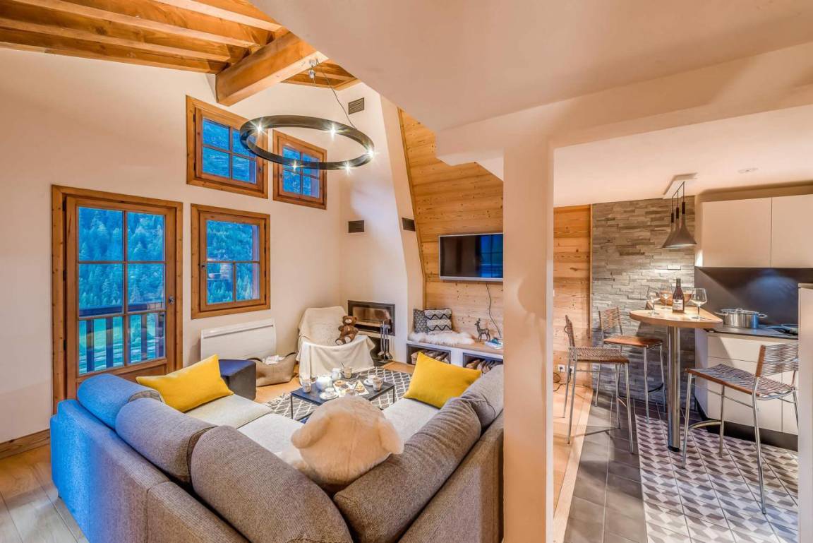 Fläche von ungefähr 129 m². Orientierung : Süd, Süd-West, West. Blick skipisten und Berg (Massif du Dôme de la Sache). Niveau 0 : Diele mit Gefrierschrank, Waschmaschine, Schränke, Wäschetrockner. Wohnzimmer mit Sofas, Kamin, Sessel. 2 Schlafzimmer mit Dusche, 2 Einzelbetten, Waschbecken, Haartrockner, Handtuchtrockner, Flachbildfernseher, WC. separates WC. Terrasse. Balkon. Niveau 1 : 3 Schlafzimmer mit Dusche, 2 Einzelbetten, Waschbecken, Haartrockner, Handtuchtrockner, Flachbildfernseher, WC. Niveau 2 : Schlafzimmer mit Dusche, 2 Einzelbetten, Waschbecken, Handtuchtrockner, Flachbildfernseher, WC. Küche mit Wasserkocher, Kaffeemaschine, Backofen, Toaster, Dunstabzugshaube, Geschirrspülmaschine, Mikrowellenherd, Glaskeramikkochfelder, Kühlschrank.