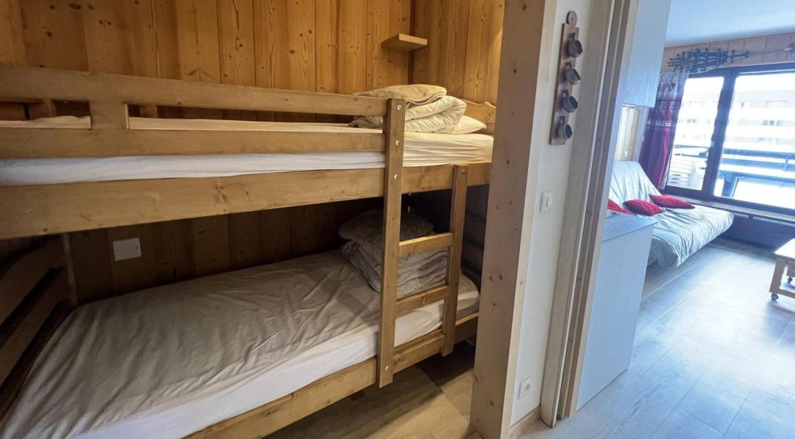 Die Residence Le Bec Rouge befindet sich in Tignes le Lac (2100 m über dem Meeresspiegel), in der Rue de La Poste, in der Nähe vieler Geschäfte und direkt an der Piste, 50 m vom Wasserpark Lagon und 100 m vom Sport- und Konferenzzentrum Tignespace entfernt. Die Apartments in den oberen Stockwerken bieten eine fantastische Aussicht. Das Gebäude verfügt über 8 Stockwerke, 4 Eingänge und Aufzüge. Ein kostenloser (während der Sommersaison) überdachter öffentlicher Parkplatz ist obligatorisch und befindet sich 50 m entfernt. Fläche von ungefähr 28 m². Erdgeschoss. Orientierung : Süd. Wohnzimmer mit Klappschlafcouch. offener Schlafbereich mit 2 Stockbetten. Kochnische mit Geschirrspülmaschine, Mikrowellenherd, 2 Glaskeramikkochfelder, Kühlschrank. separates WC. Waschräume mit Dusche. Balkon. Die oberen Betten sind nicht für Kinder unter 6 Jahren geeignet.