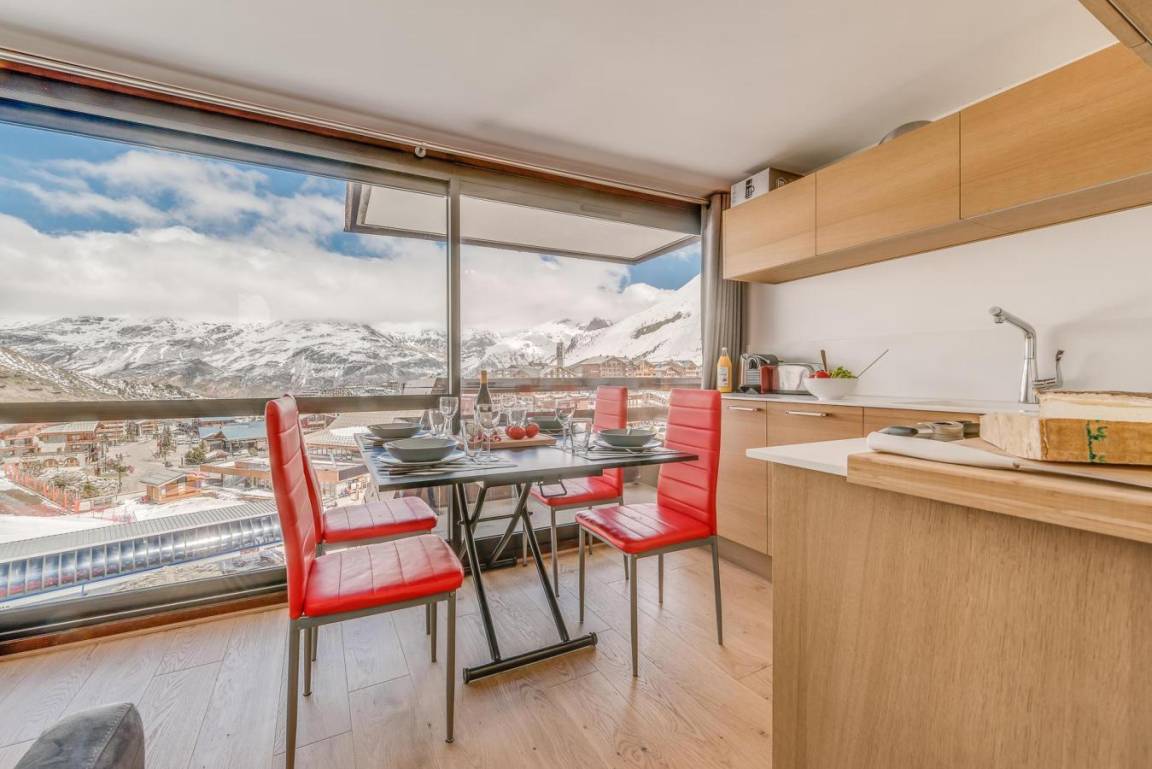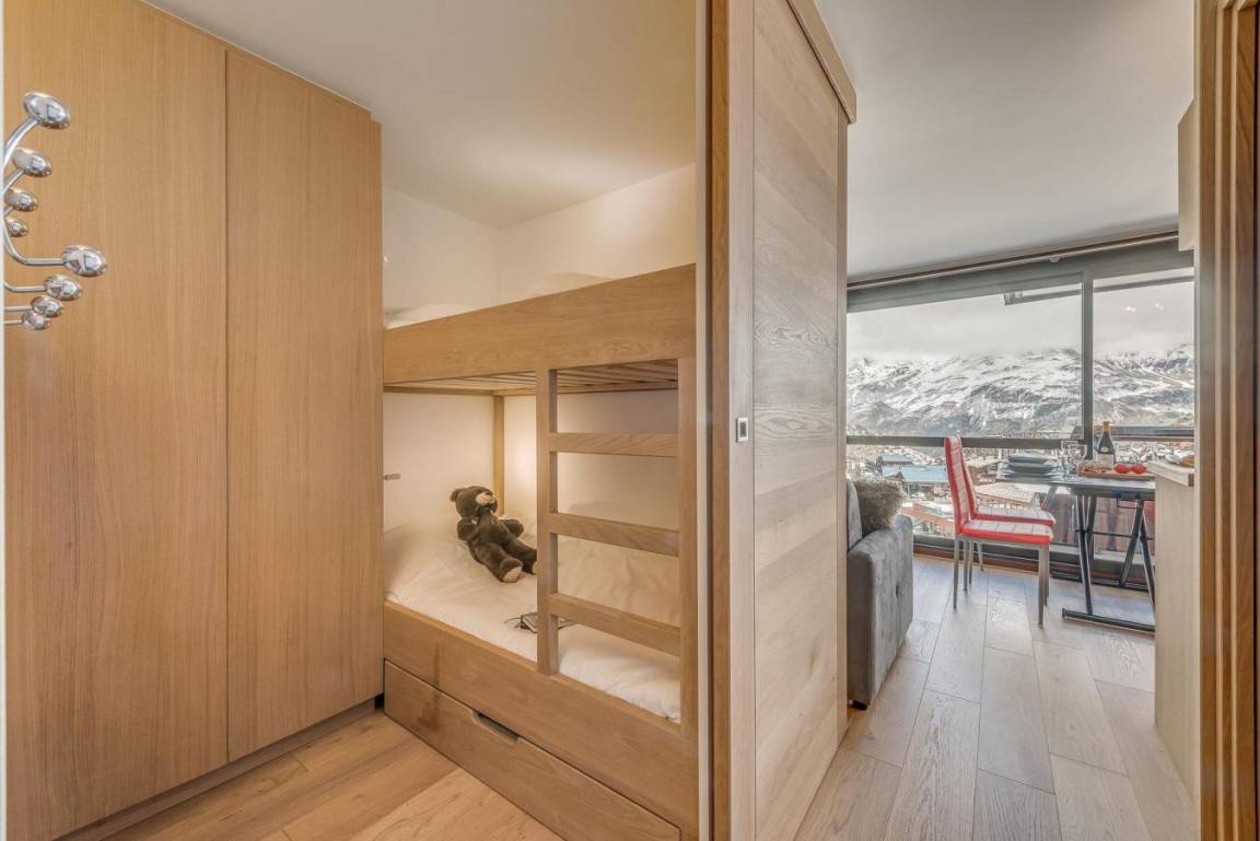 Die Residenz Palafour befindet sich im Zentrum von Tignes le Lac (2100 m ü. M.) mit direktem Zugang zu den Skiliften (Palafour-Sessellift und Tovière-Gondelbahn) und dem Treffpunkt der Skischulen. Der Indoor-Wasserpark Lagon liegt direkt gegenüber der Residenz, 50 m entfernt, das Sport- und Konferenzzentrum Tignespace ist 100 m entfernt. Ein Einkaufszentrum mit Skigeschäften, der französischen Skischule ESF, Supermarkt, Bäckerei, Pubs und Restaurants befindet sich ganz unten in diesem elfstöckigen Gebäude (4 Aufzüge). Private Skischränke befinden sich im Untergeschoss. Gebührenpflichtige öffentliche Parkplätze sind in Tignes während der Wintersaison obligatorisch. Fläche von ungefähr 26 m². 6te Etage. Orientierung : Ost. Blick station (Maison de Tignes) und Berg (Grande Sassière). Wohnzimmer mit Klappschlafcouch (160x200), fenstertür zum Balkon. offener Schlafbereich mit 2 Stockbetten (80x190). Kochnische mit kleiner Backofen mit Mikrowellenfunktion, Waschmaschine, Geschirrspülmaschine, 3 Glaskeramikkochfelder, Kühlschrank. Badezimmer mit Badewanne, Waschbecken. separates WC mit Waschbecken. Balkon. Die oberen Betten sind nicht für Kinder unter 6 Jahren geeignet.