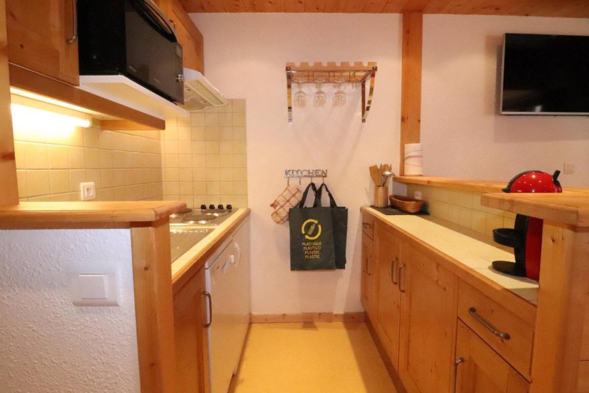 Fläche von ungefähr 55 m². 5te Etage. Orientierung : Süd. Niveau 0 : Wohnzimmer. offener Schlafbereich mit 2 Stockbetten. Kochnische mit Kaffeemaschine, Mikrowellengrill, Geschirrspülmaschine, 4 elektronische Herdplatten, Kühlschrank. Badezimmer mit Badewanne, Waschbecken. separates WC. Balkon. Niveau 1 : Schlafzimmer mit Doppelbett (140*200). Zwischengeschoss mit 2 Ausziehbetten. Badezimmer mit Dusche, Waschbecken, WC. Die oberen Betten sind nicht für Kinder unter 6 Jahren geeignet.