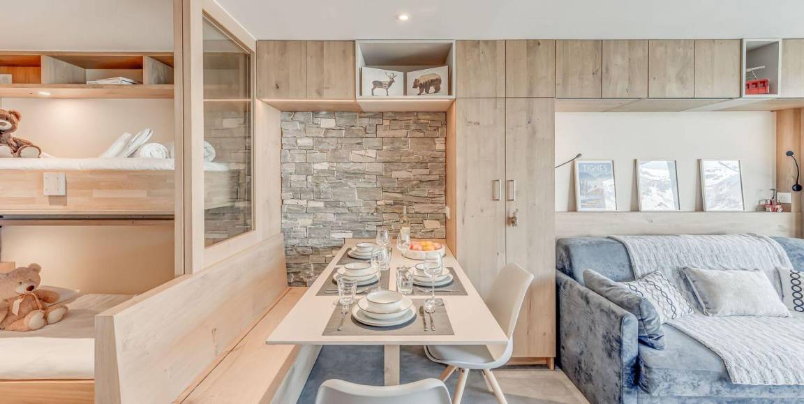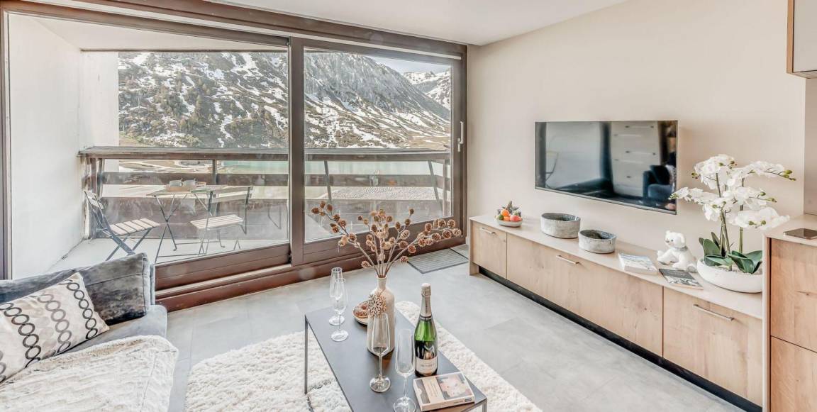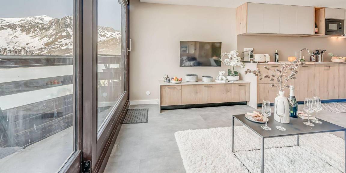 Die Residenz Palafour befindet sich im Zentrum von Tignes le Lac (2100 m ü. M.) und bietet direkten Zugang zu den Skiliften (Palafour-Sessellift und Tovière-Gondelbahn) sowie zum Treffpunkt der Skischulen. Der Indoor-Wasserpark Lagon liegt direkt gegenüber der Residenz, 50 m entfernt, das Sport- und Konferenzzentrum Tignespace ist 100 m entfernt. Ein Einkaufszentrum mit Skigeschäften, der französischen Skischule ESF, Supermarkt, Bäckerei, Pubs und Restaurants befindet sich ganz unten in diesem elfstöckigen Gebäude (vier Aufzüge). Private Skischränke befinden sich im Untergeschoss. Fläche von ungefähr 28 m². 9te Etage. Orientierung : Süd. Blick see. Wohnzimmer mit Klappschlafcouch. offener Schlafbereich mit 2 Klappbetten (simples). Kochnische mit Backofen, Geschirrspülmaschine, Mikrowellenherd, 2 Herdplatten, Kühlschrank. Waschräume mit Dusche, Waschmaschine, WC. Balkon.