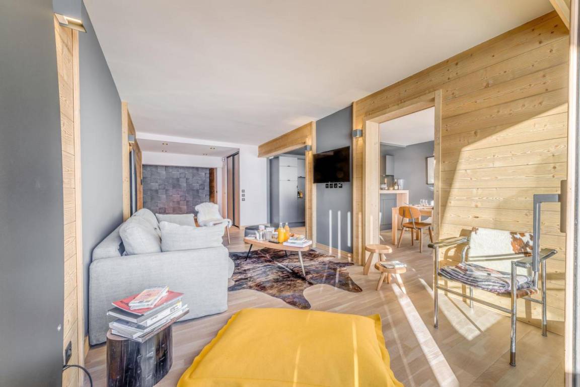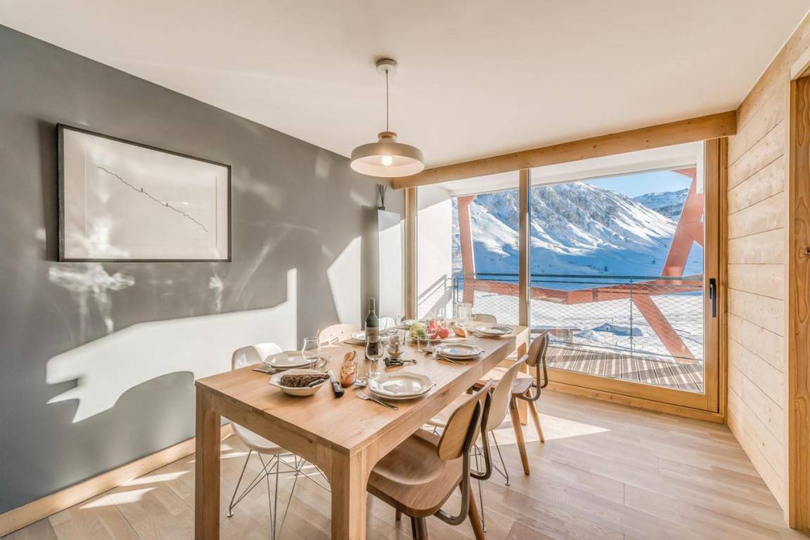 Die Residenz Phoenix in Tignes Le Lac wurde kürzlich vollständig renoviert und verfügt über 27 4-Sterne-Apartments. Jedes Apartment von hohem Standard hat eine eigene Sonnenterrasse mit atemberaubender Aussicht auf Tovière, den See und den Gletscher Grande Motte. Die Residenz liegt in der Nähe der Pisten, alle Geschäfte und Dienstleistungen, die Skischule, Tignespace (Sportzentrum), Le Lagon (Wasser- und Fitnesszentrum) liegen 200 m von der Residenz entfernt. Fläche von ungefähr 100 m². 5te Etage. Orientierung : Nord, Süd. Blick berg (glacier de la Grande) und See. Wohnzimmer mit Klappschlafcouch (160x200). Schlafzimmer mit Doppelbett (180x200), Badezimmer. Schlafzimmer mit 3 Stockbetten. offener Schlafbereich mit 2 zwei Einzelbetten (80*190). Küche mit Wasserkocher, Kaffeemaschine, Backofen, Dunstabzugshaube, Waschmaschine, Geschirrspülmaschine, Mikrowellenherd, 2 Induktionsherdplatten, Kühlschrank, Wäschetrockner. separates WC. Badezimmer mit Badewanne. Balkon ab 10.00 m². Die oberen Betten sind nicht für Kinder unter 6 Jahren geeignet.