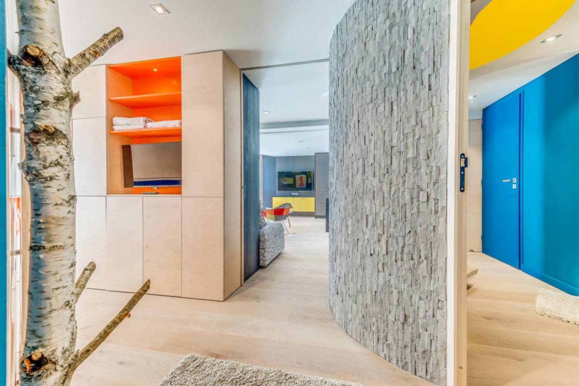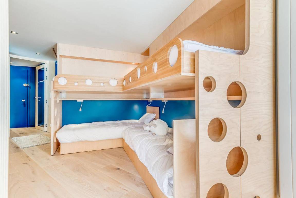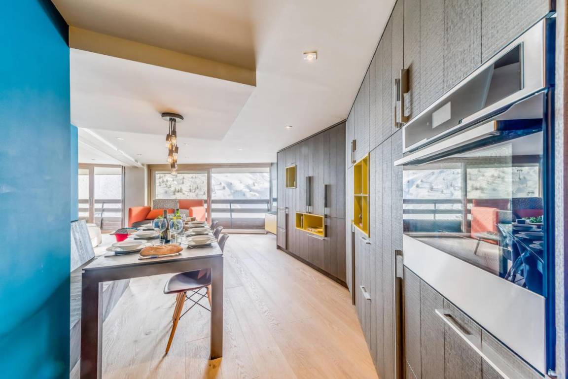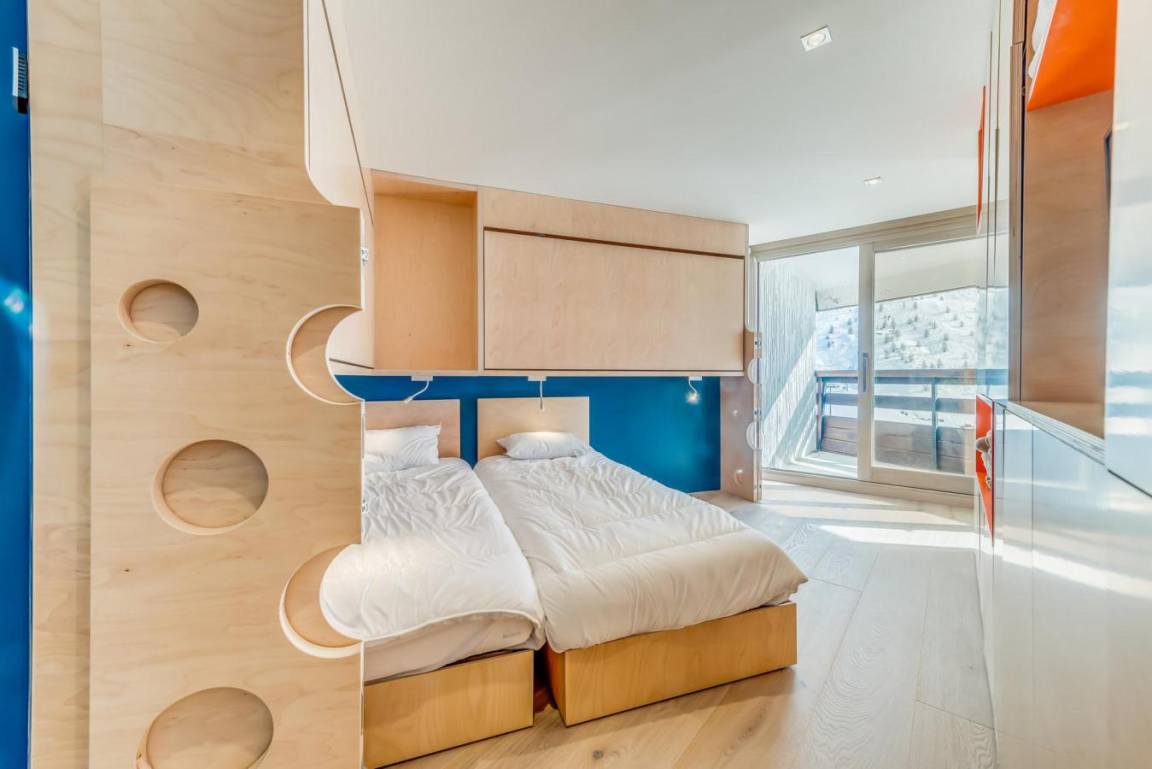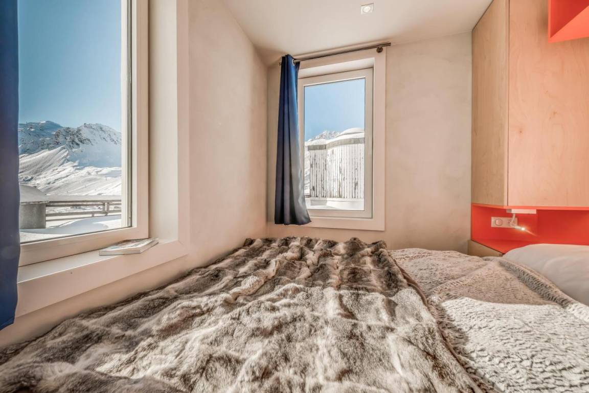 Die Residenz Palafour befindet sich im Zentrum von Tignes le Lac (2100 m ü. M.) und bietet direkten Zugang zu den Skiliften (Palafour-Sessellift und Tovière-Gondelbahn) sowie zum Treffpunkt der Skischulen. Der Indoor-Wasserpark Lagon liegt direkt gegenüber der Residenz, 50 m entfernt, das Sport- und Konferenzzentrum Tignespace ist 100 m entfernt. Ein Einkaufszentrum mit Skigeschäften, der französischen Skischule ESF, Supermarkt, Bäckerei, Pubs und Restaurants befindet sich ganz unten in diesem elfstöckigen Gebäude (vier Aufzüge). Private Skischränke befinden sich im Untergeschoss. Fläche von ungefähr 80 m². 11te Etage. Orientierung : Süd. Wohnzimmer mit Klappschlafcouch. offenes Schlafzimmer mit 2 Einzelbetten, 4 Stockbetten. Schlafzimmer mit italienische Duschkabine, Doppelbett, WC. Kochnische mit Backofen, Waschmaschine, Geschirrspülmaschine, Mikrowellenherd, Glaskeramikkochfelder, Kühlschrank. Waschräume mit italienische Duschkabine, WC. Waschräume mit Dusche, WC. Die oberen Betten sind nicht für Kinder unter 6 Jahren geeignet.