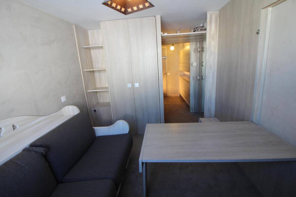 Die Residenz Palafour befindet sich im Zentrum von Tignes le Lac (2100 m ü. M.) und bietet direkten Zugang zu den Skiliften (Palafour-Sessellift und Tovière-Gondelbahn) sowie zum Treffpunkt der Skischulen. Der Indoor-Wasserpark Lagon liegt direkt gegenüber der Residenz, 50 m entfernt, das Sport- und Konferenzzentrum Tignespace ist 100 m entfernt. Ein Einkaufszentrum mit Skigeschäften, der französischen Skischule ESF, Supermarkt, Bäckerei, Pubs und Restaurants befindet sich ganz unten in diesem elfstöckigen Gebäude (vier Aufzüge). Private Skischränke befinden sich im Untergeschoss. Fläche von ungefähr 16 m². 9te Etage. Orientierung : Nord. Wohnzimmer mit Klappschlafcouch. Kochnische mit Backofen, Mikrowellenherd, 2 elektronische Herdplatten, Kühlschrank. Waschräume mit Dusche, WC.