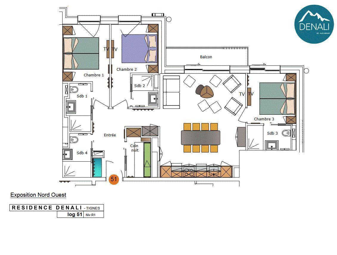 Die Besonderheit des Denali zeigt sich in seinem Wasserbereich mit Schwimmbecken, Planschbecken, Sauna, Hammam und Whirlpool, in dem Sie den Tag entspannt und fit ausklingen lassen können. Fläche von ungefähr 81 m². Orientierung : Nord-West. Wohnzimmer mit . 2 Schlafzimmer mit 2 zwei Einzelbetten (90*200), , WC. Schlafzimmer mit Doppelbett (160*200), . Schlafbereich mit 2 Stockbetten (80*190). Küche mit Kaffeemaschine (filtre et Nespresso), , Backofen, Geschirrspülmaschine, Mikrowellenherd, 2 Glaskeramikkochfelder, Kühl-Gefrier-Kombination. Badezimmer mit Haartrockner, WC. Die oberen Betten sind nicht für Kinder unter 6 Jahren geeignet.