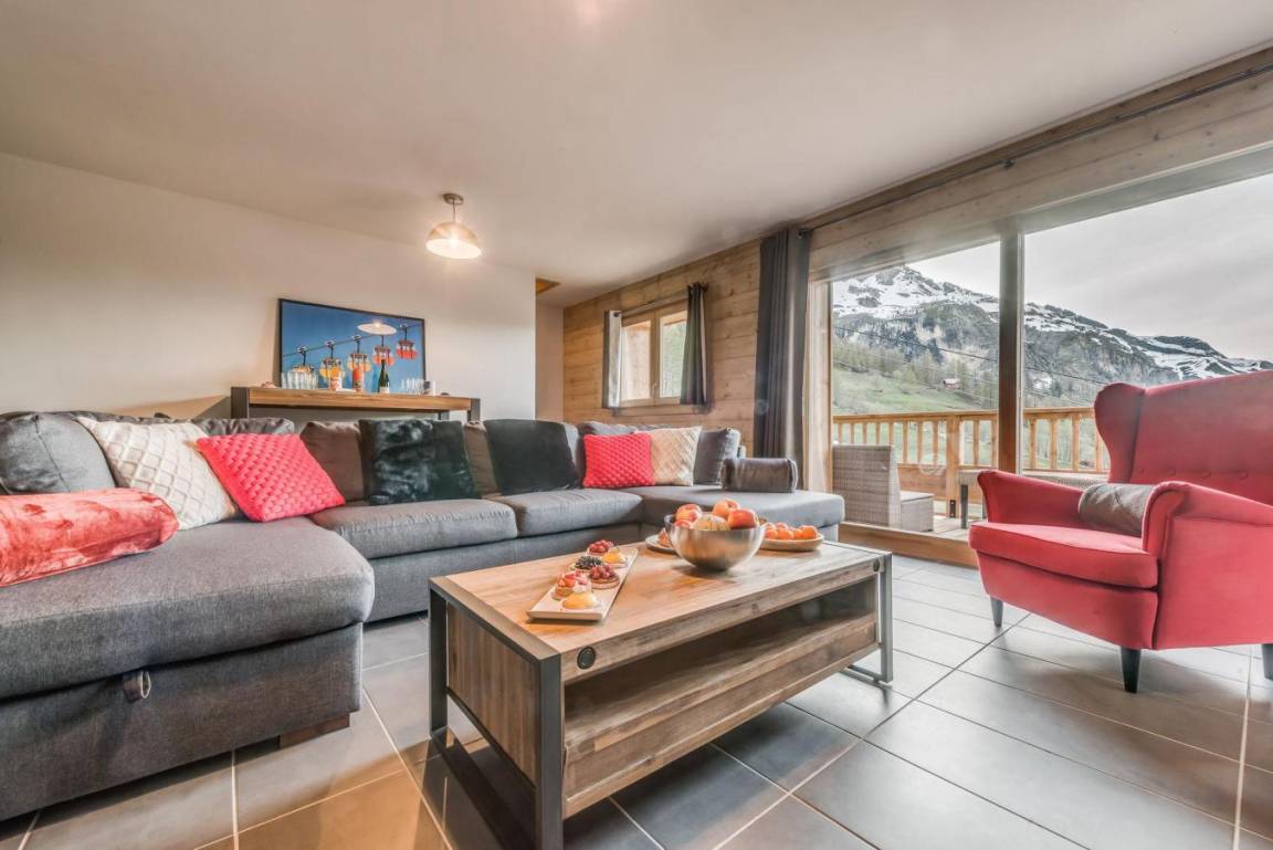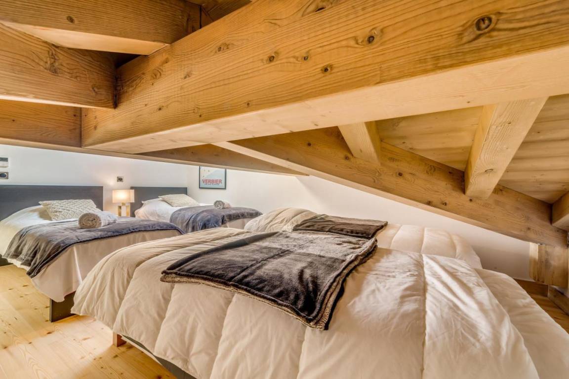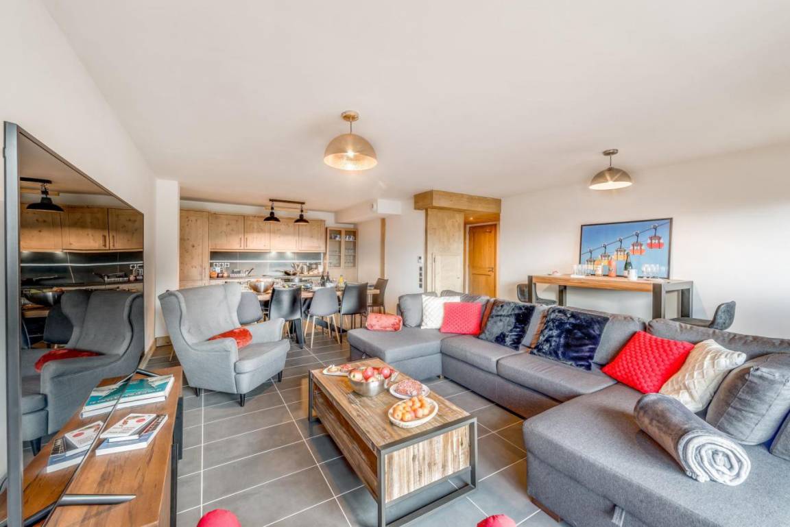 Fläche von ungefähr 127 m². 6te Etage. Orientierung : Nord, West. Niveau 0 : Wohnzimmer mit 2 Sofas, Sessel. Schlafzimmer mit Doppelbett (180x200). Küche mit Wasserkocher, Kaffeemaschine, kleiner Backofen mit Mikrowellenfunktion, Toaster, Waschmaschine, Geschirrspülmaschine, Glaskeramikkochfelder, Kühl-Gefrier-Kombination. Waschräume mit Dusche, Waschbecken, Haartrockner, Handtuchtrockner. separates WC. Balkon ab 18.50 m². Niveau 1 : Schlafzimmer mit Doppelbett (180x200), 2 Einzelbetten (90x200). 2 Schlafzimmer mit 2 Einzelbetten (90x200), Velux. Waschräume mit Dusche, Waschbecken, Haartrockner, Handtuchtrockner, WC. Badezimmer mit Badewanne, Waschbecken, Haartrockner, Handtuchtrockner, WC.