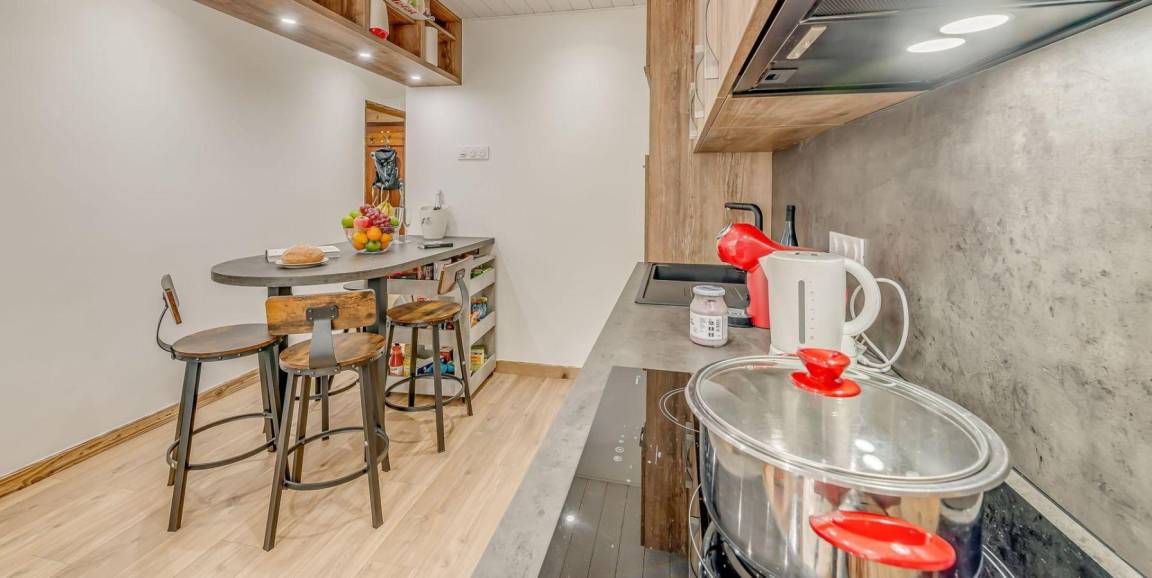 Fläche von ungefähr 38 m². 1te Etage. Orientierung : Süd. Wohnzimmer mit Klappschlafcouch, TV. Schlafzimmer mit Doppelbett. offener Schlafbereich mit 2 Stockbetten. Kochnische mit Backofen, Multifunktions-Backofen, Dunstabzugshaube, Geschirrspülmaschine, Mikrowellenherd, 3 Glaskeramikkochfelder, Kühlschrank. WC. Badezimmer mit Badewanne, Waschmaschine. Terrasse. Waschmaschine. Die oberen Betten sind nicht für Kinder unter 6 Jahren geeignet.