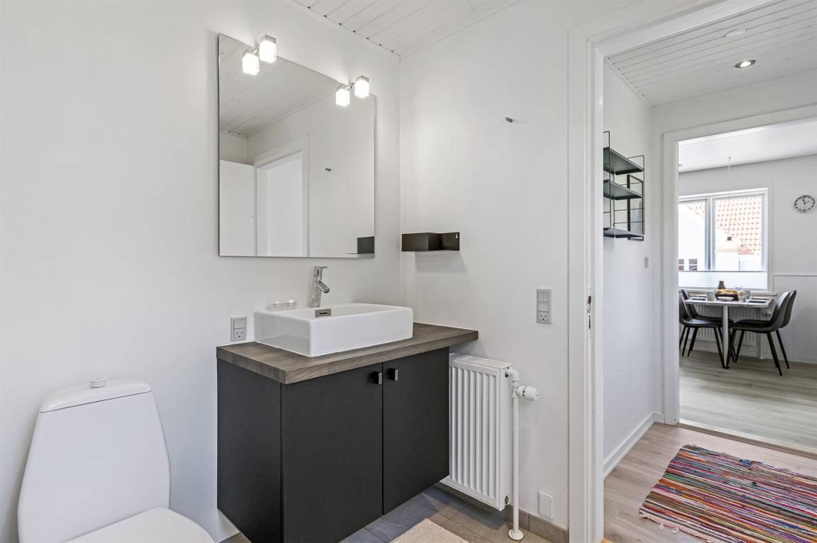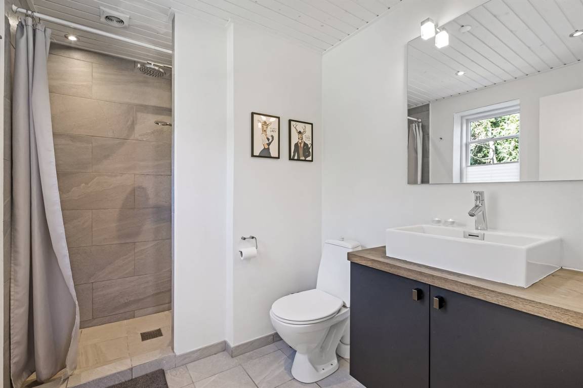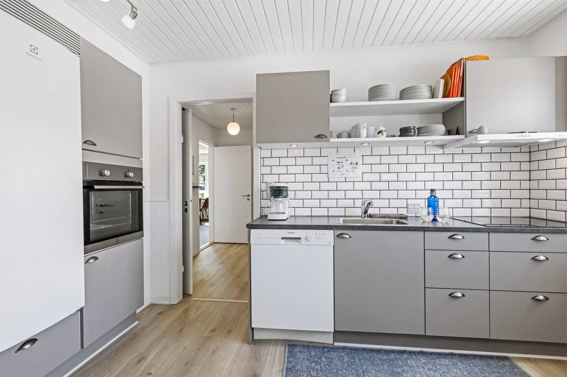 DraußenDie Ferienunterkunft liegt auf einem 670 m² großen Gartengrundstück. Die Entfernung zum Meer beträgt 5500 m. Die Entfernung zum Fjord beträgt 1500 m. Die nächste Einkaufsmöglichkeit liegt 6000 m entfernt. Es steht ein offenes Terrassenareal zur Verfügung. Parkplatz auf dem Grundstück.