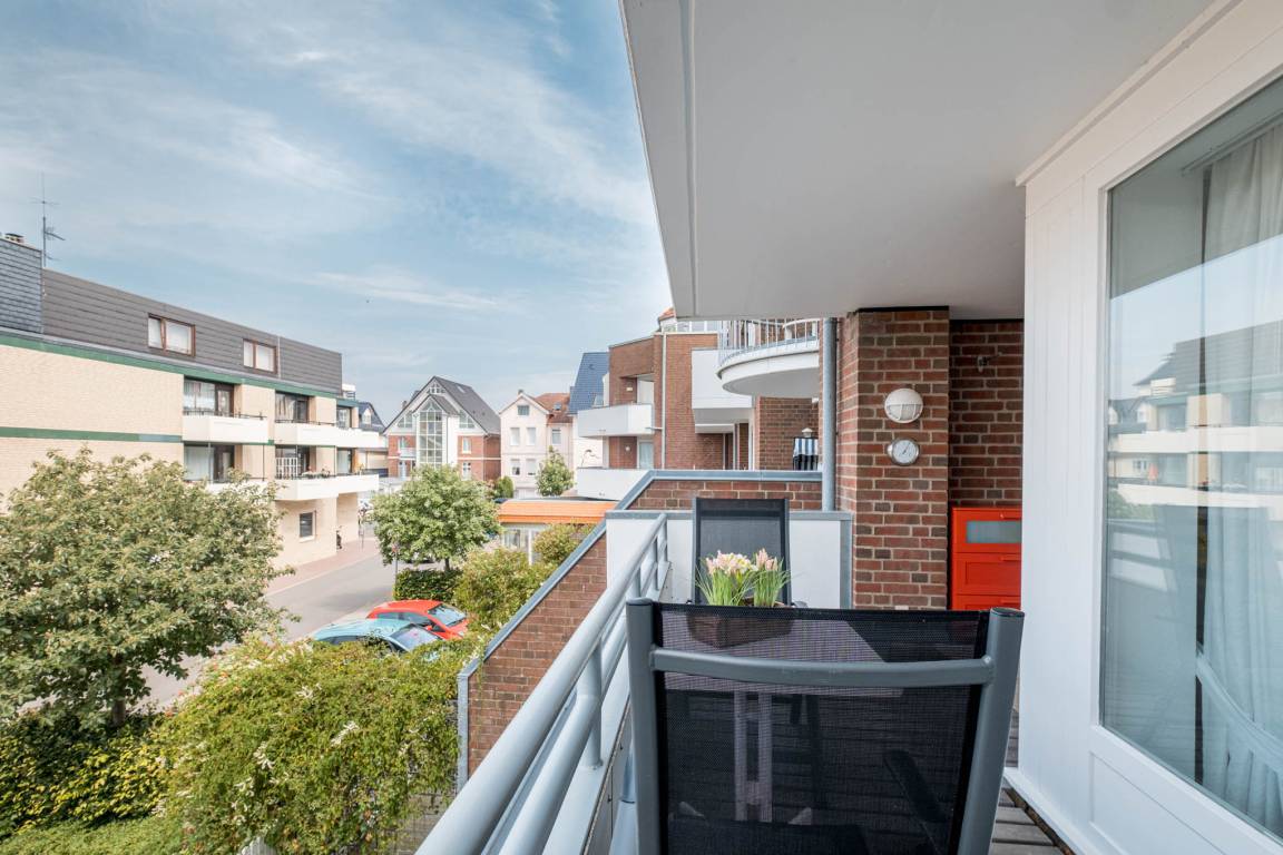 Auf dem halb überdachten, nach Westen ausgerichteten Balkon lassen sich entspannte Stunden verbringen.