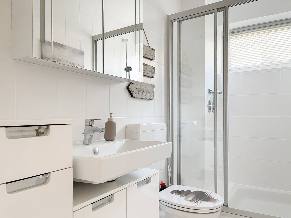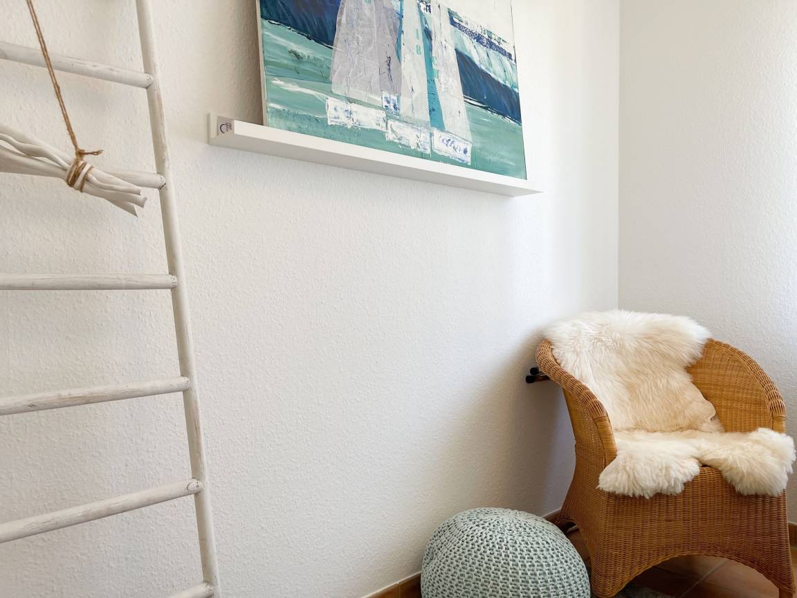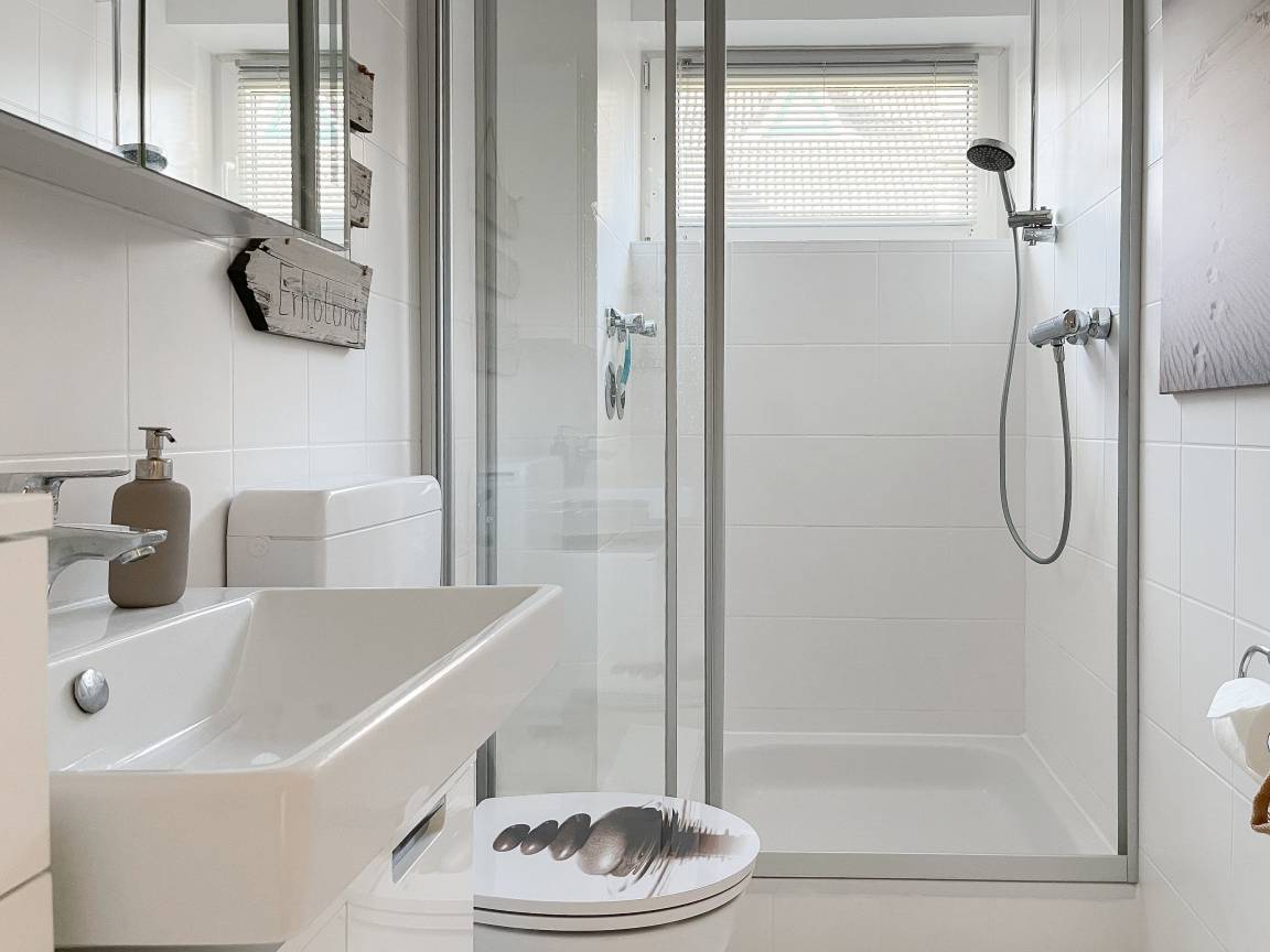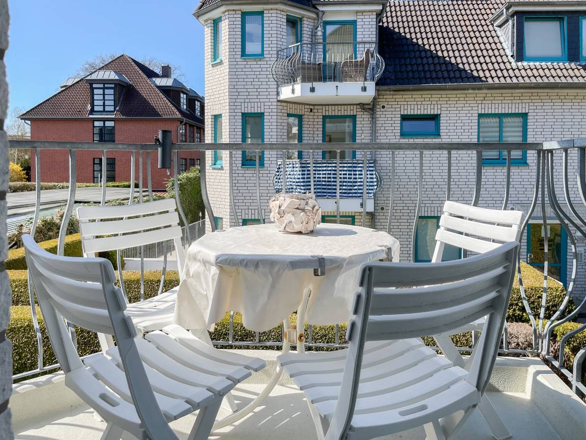 Die sonnige zwei Zimmer Ferienwohnung befindet sich in der 1. Etage und verfügt über kleinen Sonnenbalkon, der mit Gartenmöbeln ausgestattet ist. Der Wohnbereich verfügt über ein Sofa mit Schlaffunktion und TV, eine offene Küche und ein gemütlicher Essbereich, der im Erker untergebracht ist. Das Schlafzimmer ist mit einem Doppelbett (180x200) und einem Kleiderschrank ausgestattet. Das Duschbad verfügt über ein Fenster und ist hell und ansprechend. WLAN steht zur kostenlosen Nutzung zur Verfügung.