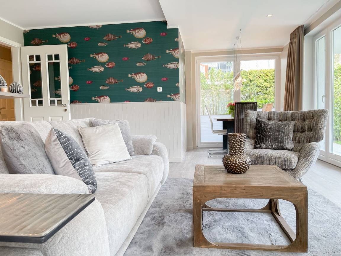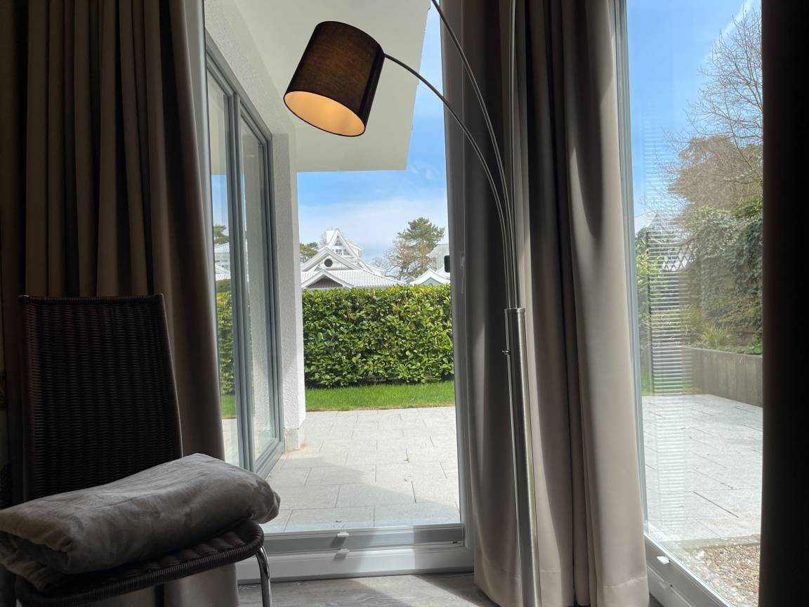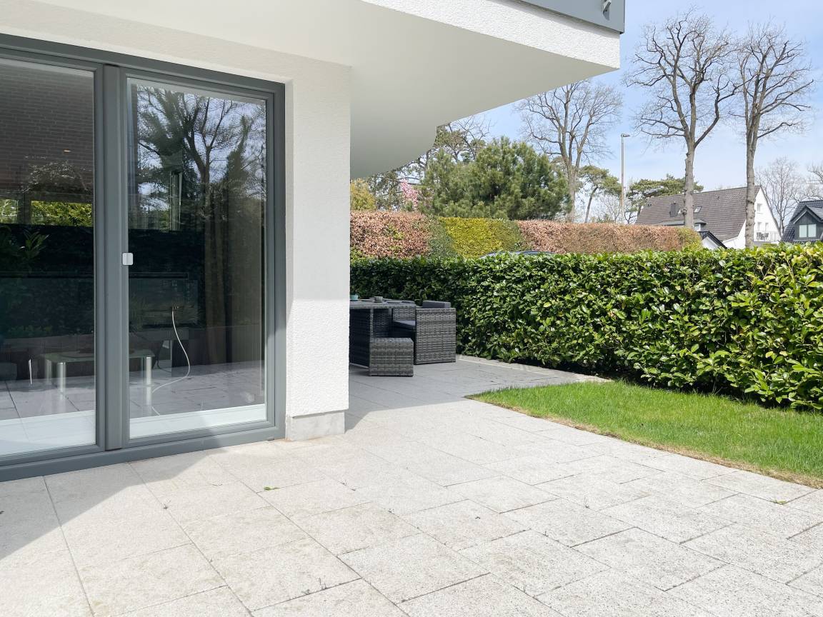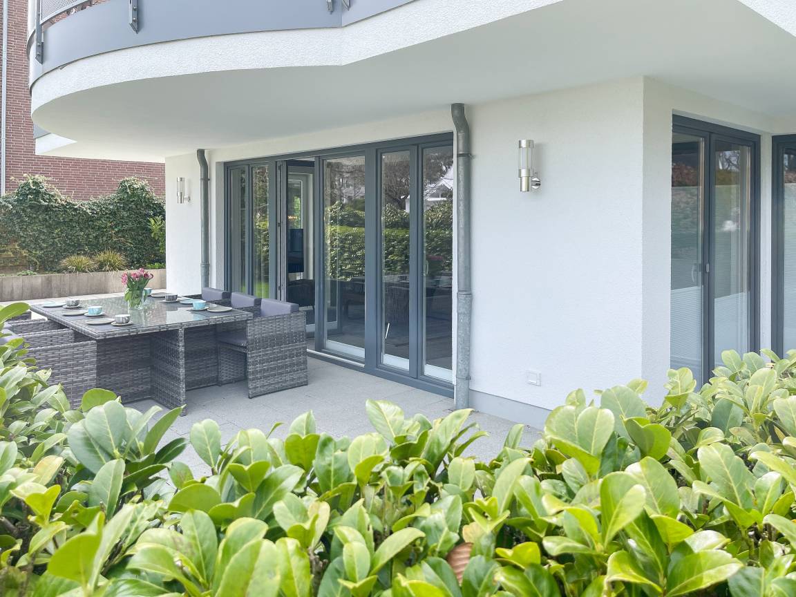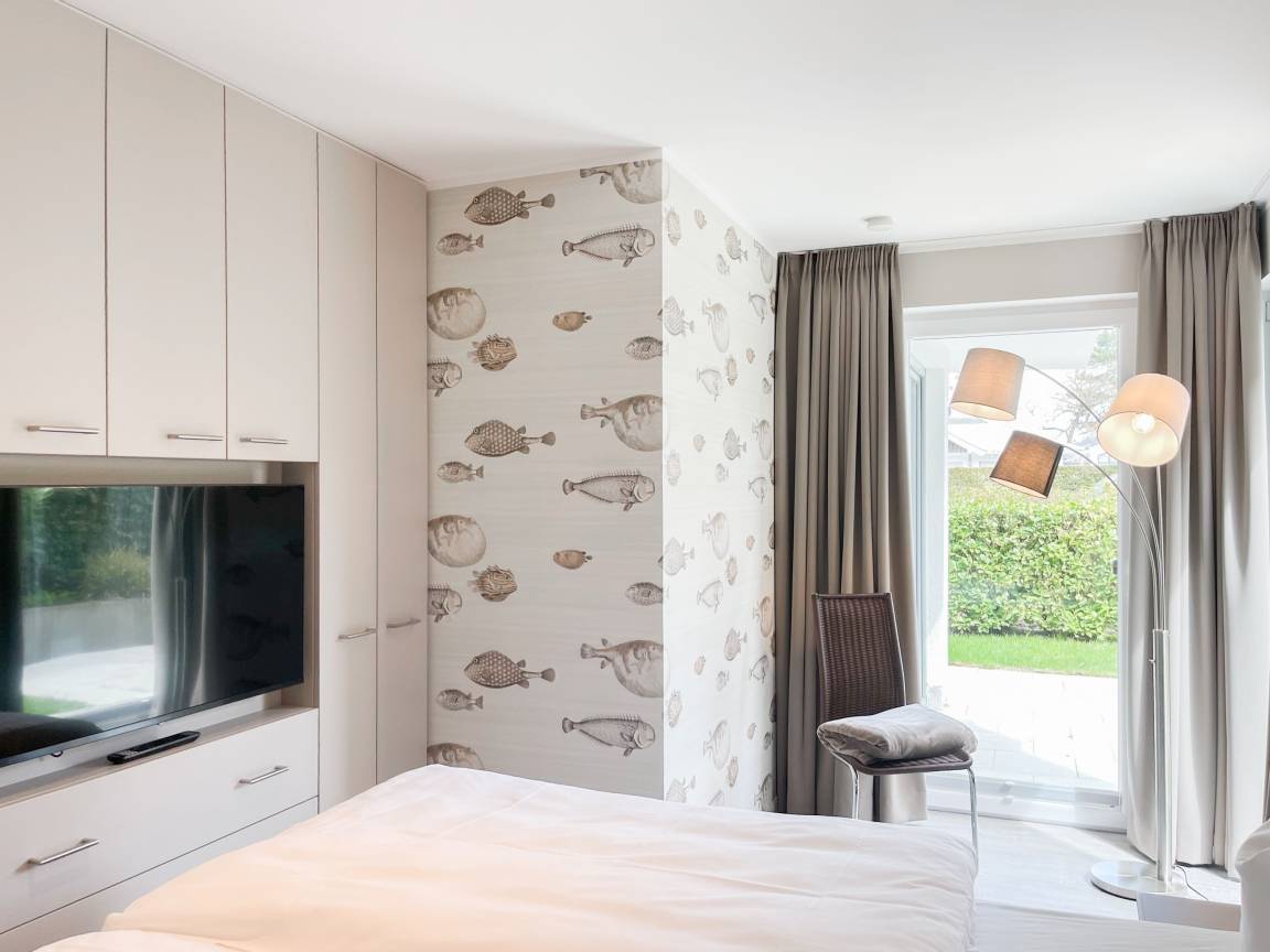 Zeitgemäßer Luxus in Perfektion! Der Innenarchitektin ist es gelungen, unter Verwendung warmer Farben, hochwertiger Materialien und exklusivem Mobiliar in Verbindung mit wunderbaren Einbauten ein herrliches Ambiente zu schaffen, das höchsten Ansprüchen genügt. Es erwartet Sie ein lichtdurchfluteter Wohn- Essbereich mit bodentiefen Fenstern und Blick auf die großzügig angelegte Terrasse, die teilweise überdacht ist. Die Räumlichkeiten sind großzügig und bieten ausreichend Raum für gemeinsame Mahlzeiten und gemütliches Beisammensein. Die äußerst hochwertige Designküche in perfekter Ausstattung fügt sich wunderbar in den Wohnraum ein. Es stehen zwei separate Schlafzimmer zur Verfügung, die mit hochwertigen Knoll Boxspringbetten, Einbauschränken und einem TV ausgestattet sind. Die Fenster lassen sich durch Vorhänge und Plissees verdunkeln. Das neue Duschbad ist mit wertigen Sanitärobjekten ausgestattet und verfügt über ein Fenster. Weiterhin steht ein separates Gäste WC zur Verfügung. Ein fester Parkplatz befindet sich direkt vor der Wohnung und Fahrräder können im Garten auf einem Fahrradstellplatz sowie in einer abschließbaren Fahrradgarage sicher und trocken untergestellt werden.[nbsp] Im Keller befinden sich Waschmaschine und Trockner (Münzgräte), die gemeinschaftlich genutzt werden können, sowie ein abschließbarer Raum für unsere Gäste, der zum Abstellen von Koffern oder zum Trocknen von Kleidung genutzt werden kann.