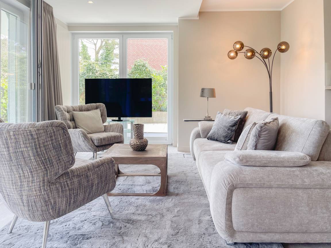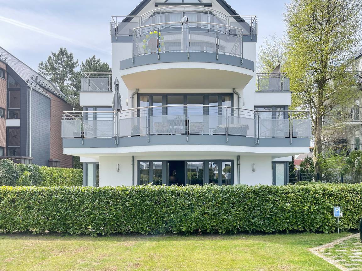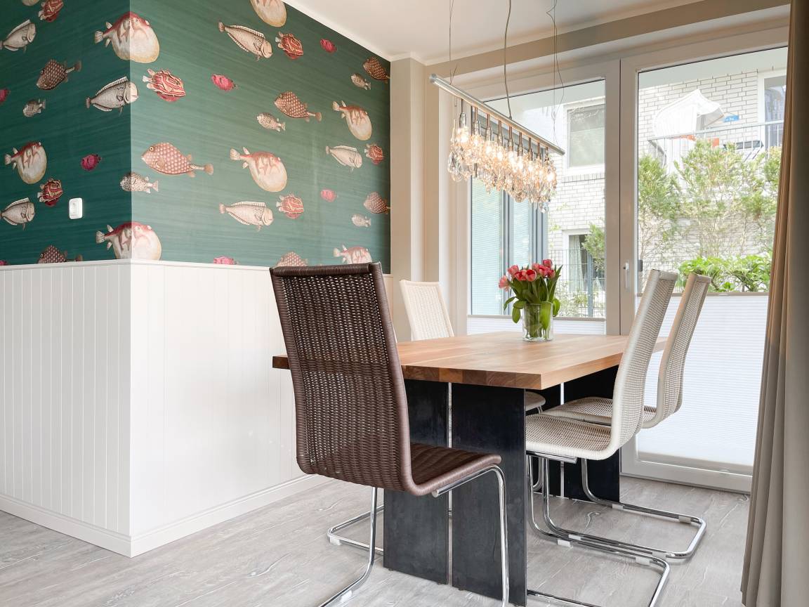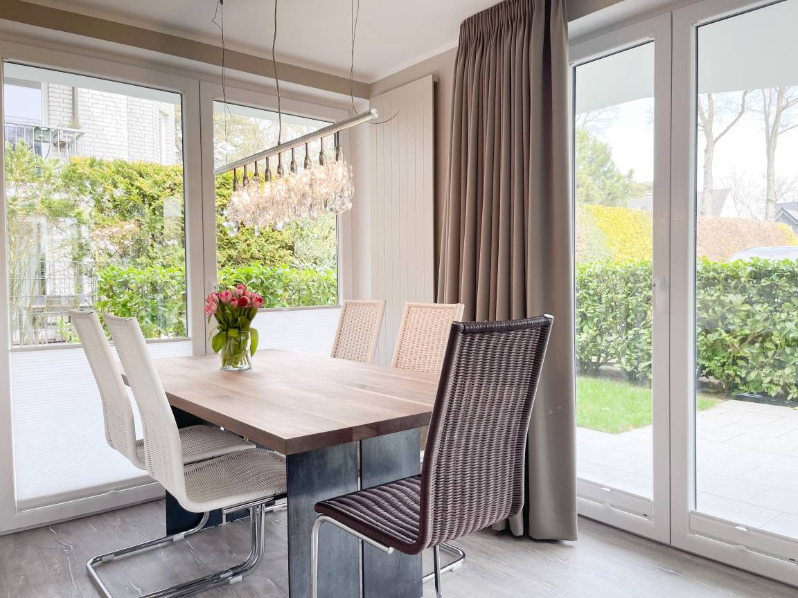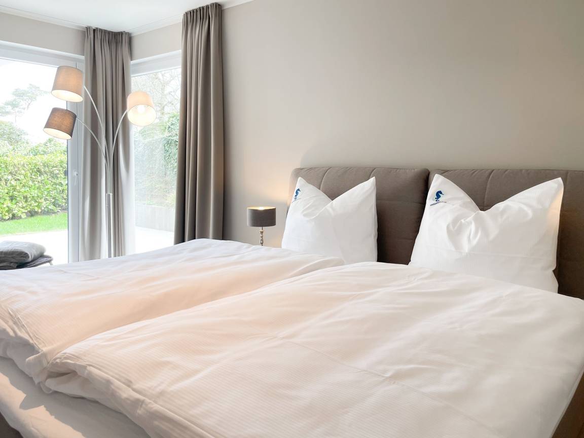 Zeitgemäßer Luxus in Perfektion! Der Innenarchitektin ist es gelungen, unter Verwendung warmer Farben, hochwertiger Materialien und exklusivem Mobiliar in Verbindung mit wunderbaren Einbauten ein herrliches Ambiente zu schaffen, das höchsten Ansprüchen genügt. Es erwartet Sie ein lichtdurchfluteter Wohn- Essbereich mit bodentiefen Fenstern und Blick auf die großzügig angelegte Terrasse, die teilweise überdacht ist. Die Räumlichkeiten sind großzügig und bieten ausreichend Raum für gemeinsame Mahlzeiten und gemütliches Beisammensein. Die äußerst hochwertige Designküche in perfekter Ausstattung fügt sich wunderbar in den Wohnraum ein. Es stehen zwei separate Schlafzimmer zur Verfügung, die mit hochwertigen Knoll Boxspringbetten, Einbauschränken und einem TV ausgestattet sind. Die Fenster lassen sich durch Vorhänge und Plissees verdunkeln. Das neue Duschbad ist mit wertigen Sanitärobjekten ausgestattet und verfügt über ein Fenster. Weiterhin steht ein separates Gäste WC zur Verfügung. Ein fester Parkplatz befindet sich direkt vor der Wohnung und Fahrräder können im Garten auf einem Fahrradstellplatz sowie in einer abschließbaren Fahrradgarage sicher und trocken untergestellt werden.[nbsp] Im Keller befinden sich Waschmaschine und Trockner (Münzgräte), die gemeinschaftlich genutzt werden können, sowie ein abschließbarer Raum für unsere Gäste, der zum Abstellen von Koffern oder zum Trocknen von Kleidung genutzt werden kann.