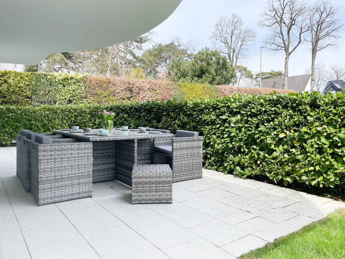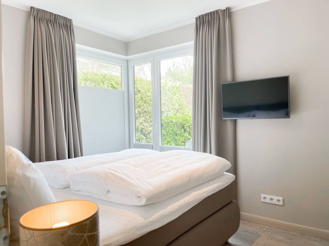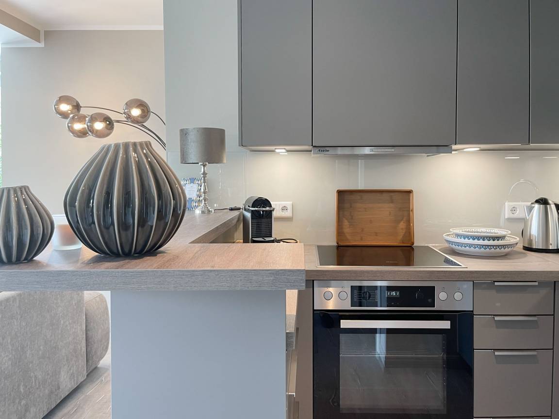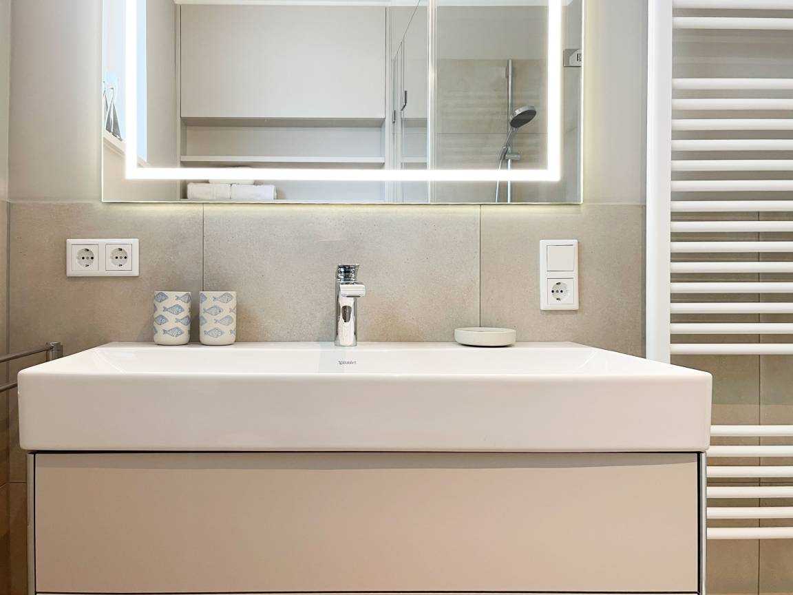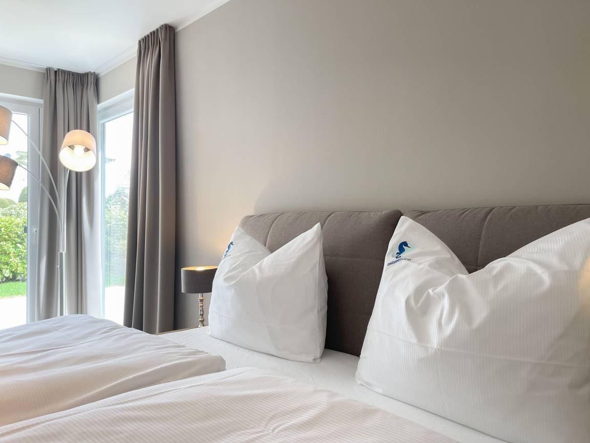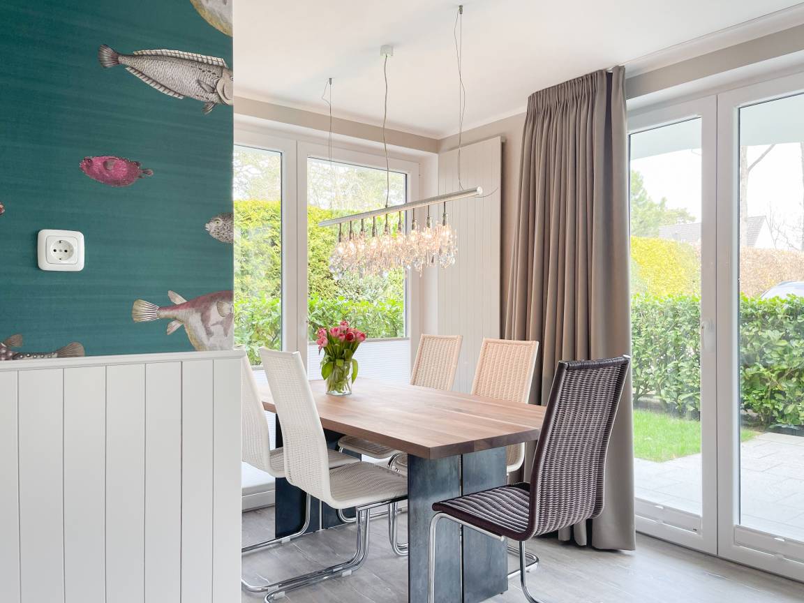 Zeitgemäßer Luxus in Perfektion! Der Innenarchitektin ist es gelungen, unter Verwendung warmer Farben, hochwertiger Materialien und exklusivem Mobiliar in Verbindung mit wunderbaren Einbauten ein herrliches Ambiente zu schaffen, das höchsten Ansprüchen genügt. Es erwartet Sie ein lichtdurchfluteter Wohn- Essbereich mit bodentiefen Fenstern und Blick auf die großzügig angelegte Terrasse, die teilweise überdacht ist. Die Räumlichkeiten sind großzügig und bieten ausreichend Raum für gemeinsame Mahlzeiten und gemütliches Beisammensein. Die äußerst hochwertige Designküche in perfekter Ausstattung fügt sich wunderbar in den Wohnraum ein. Es stehen zwei separate Schlafzimmer zur Verfügung, die mit hochwertigen Knoll Boxspringbetten, Einbauschränken und einem TV ausgestattet sind. Die Fenster lassen sich durch Vorhänge und Plissees verdunkeln. Das neue Duschbad ist mit wertigen Sanitärobjekten ausgestattet und verfügt über ein Fenster. Weiterhin steht ein separates Gäste WC zur Verfügung. Ein fester Parkplatz befindet sich direkt vor der Wohnung und Fahrräder können im Garten auf einem Fahrradstellplatz sowie in einer abschließbaren Fahrradgarage sicher und trocken untergestellt werden.[nbsp] Im Keller befinden sich Waschmaschine und Trockner (Münzgräte), die gemeinschaftlich genutzt werden können, sowie ein abschließbarer Raum für unsere Gäste, der zum Abstellen von Koffern oder zum Trocknen von Kleidung genutzt werden kann.