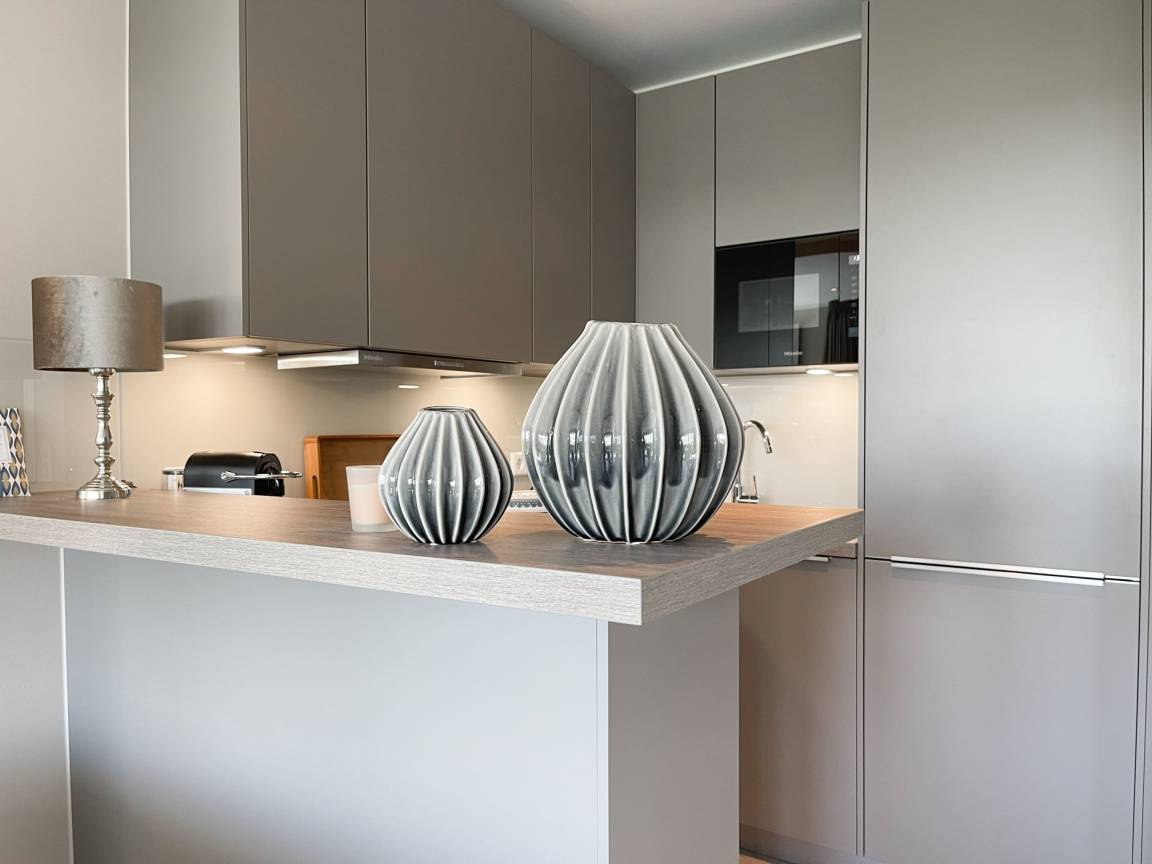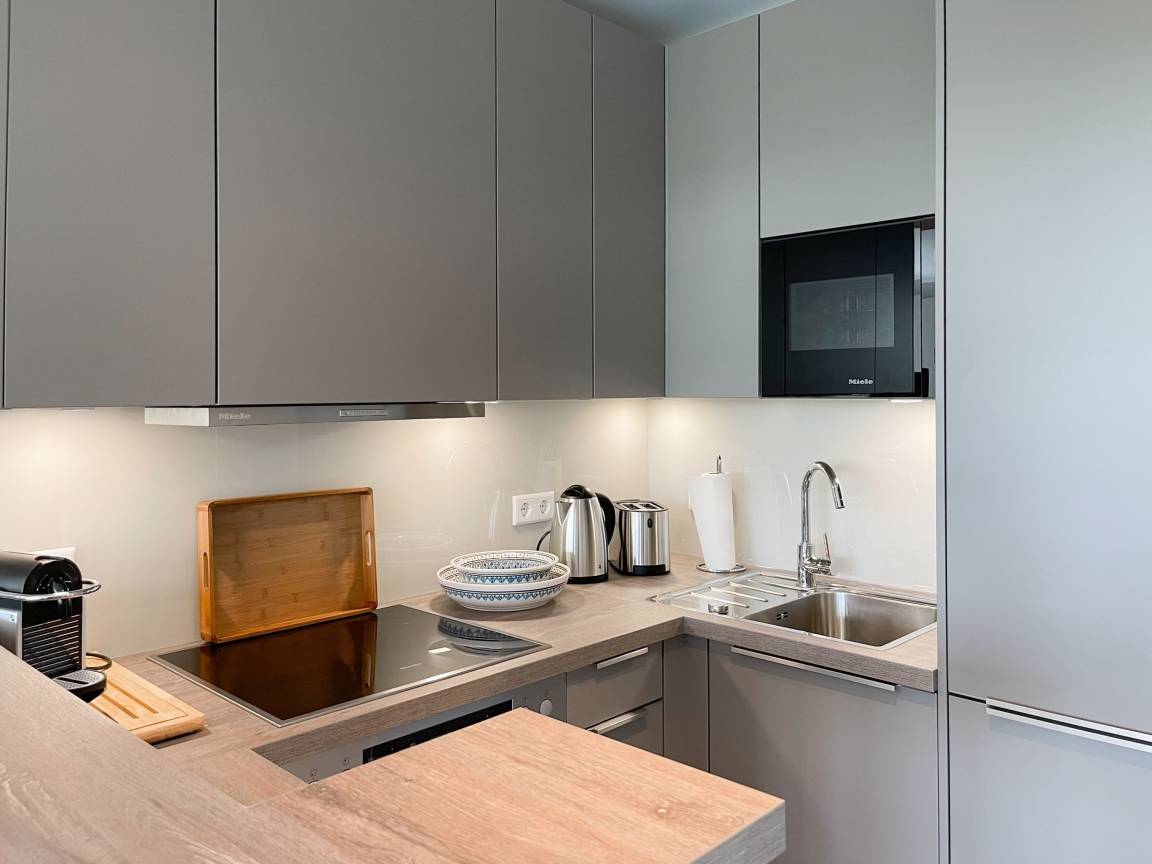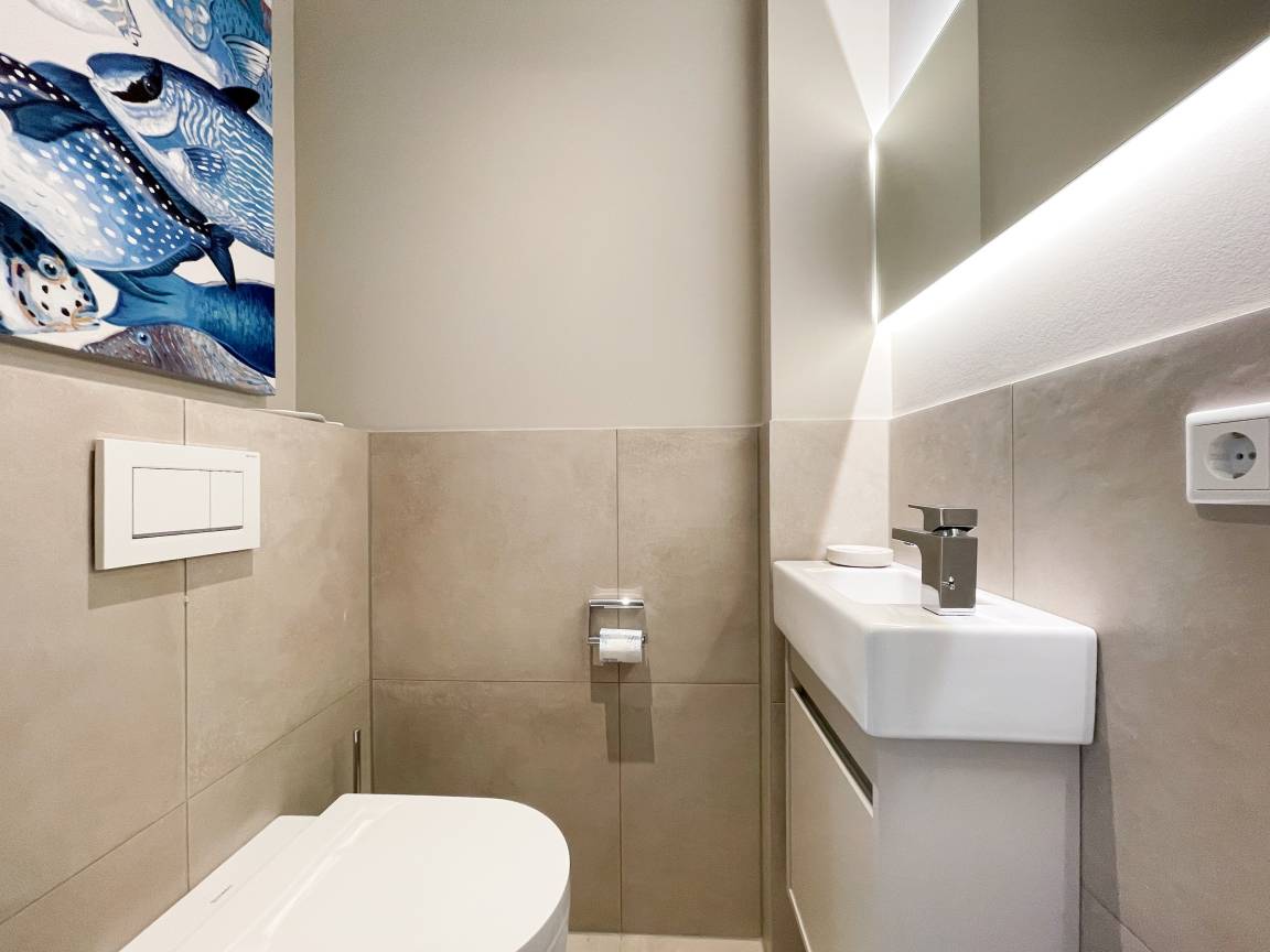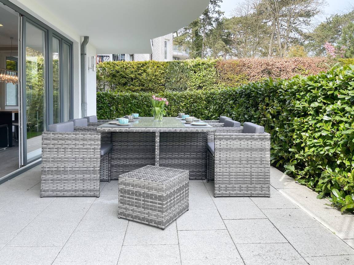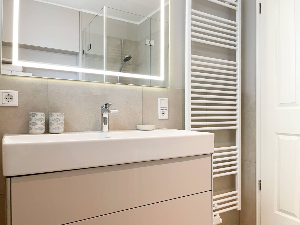 Zeitgemäßer Luxus in Perfektion! Der Innenarchitektin ist es gelungen, unter Verwendung warmer Farben, hochwertiger Materialien und exklusivem Mobiliar in Verbindung mit wunderbaren Einbauten ein herrliches Ambiente zu schaffen, das höchsten Ansprüchen genügt. Es erwartet Sie ein lichtdurchfluteter Wohn- Essbereich mit bodentiefen Fenstern und Blick auf die großzügig angelegte Terrasse, die teilweise überdacht ist. Die Räumlichkeiten sind großzügig und bieten ausreichend Raum für gemeinsame Mahlzeiten und gemütliches Beisammensein. Die äußerst hochwertige Designküche in perfekter Ausstattung fügt sich wunderbar in den Wohnraum ein. Es stehen zwei separate Schlafzimmer zur Verfügung, die mit hochwertigen Knoll Boxspringbetten, Einbauschränken und einem TV ausgestattet sind. Die Fenster lassen sich durch Vorhänge und Plissees verdunkeln. Das neue Duschbad ist mit wertigen Sanitärobjekten ausgestattet und verfügt über ein Fenster. Weiterhin steht ein separates Gäste WC zur Verfügung. Ein fester Parkplatz befindet sich direkt vor der Wohnung und Fahrräder können im Garten auf einem Fahrradstellplatz sowie in einer abschließbaren Fahrradgarage sicher und trocken untergestellt werden.[nbsp] Im Keller befinden sich Waschmaschine und Trockner (Münzgräte), die gemeinschaftlich genutzt werden können, sowie ein abschließbarer Raum für unsere Gäste, der zum Abstellen von Koffern oder zum Trocknen von Kleidung genutzt werden kann.