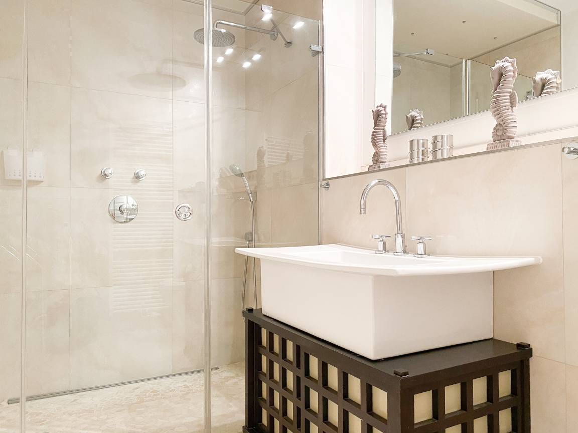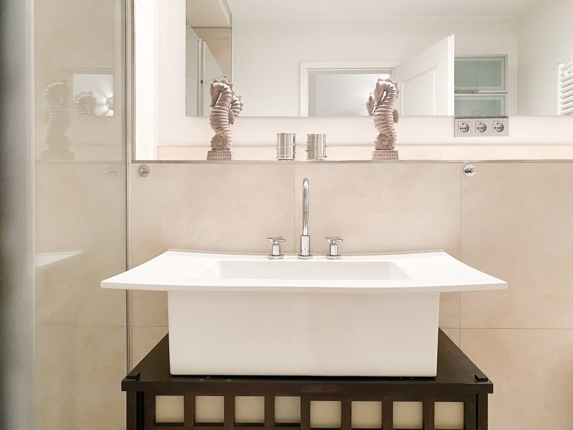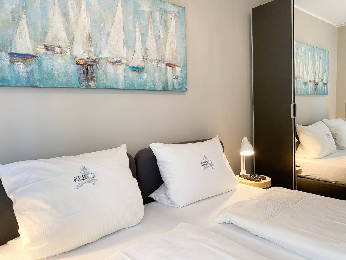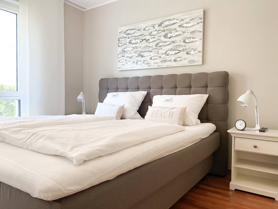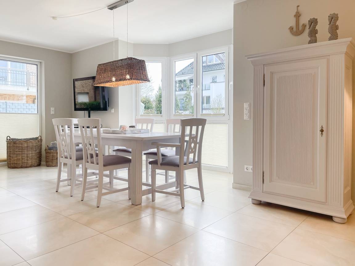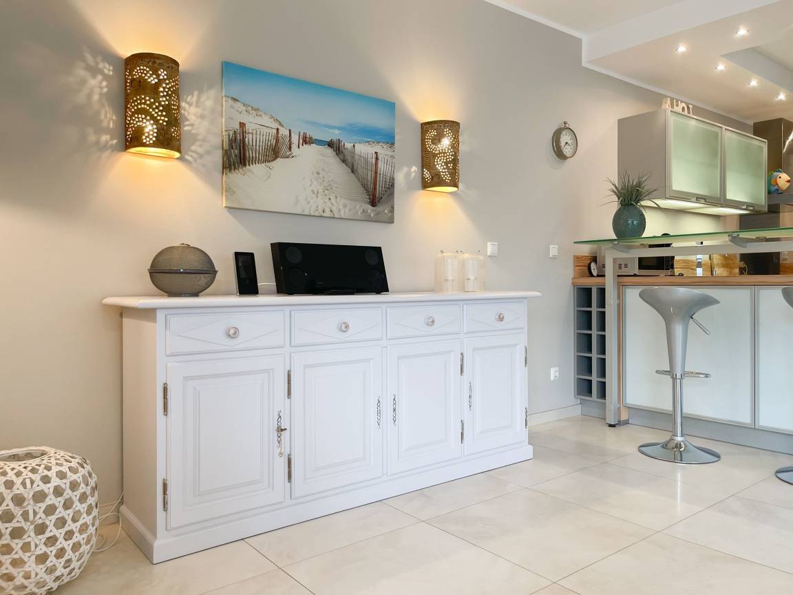 Die hochwertige Ferienwohnung "Fritz Strandkate" verfügt über einen großzügigen Wohnbereich mit angrenzendem Essbereich, der ausreichend Platz für 6 Personen bietet. TV, Hifi Anlage und WLAN sind selbstverständlich vorhanden. Bodentiefe Fensterelemente und die Südausrichtung der Wohnung sorgen für helle und sonnige Räumlichkeiten. Sämtliche Fenster sind mit elektrischen Außenjalousien versehen und die Fußbodenheizung sorgt für ein angenehmes Raumklima.[nbsp] Die offene, hochwertige Einbauküche ist bestens ausgestattet und lässt keine Wünsche offen. Es stehen zwei separate Schlafzimmer mit TV zur Verfügung. [nbsp]Eines ist mit einem komfortablen Doppelbett[nbsp] ausgestattet, das andere mit zwei Einzelbetten, die sich schnell zusammen stellen lassen. Das Bad ist sehr hochwertig und verfügt über eine bodentiefe XXL Dusche. Ein separates Gäste WC ist selbstverständlich vorhanden. Das Haus am Meer verfügt über einen Fahrstuhl und eine Tiefgarage (Einfahrtshöhe 2 m), in der ein fester Stellplatz reserviert ist. Ein Fahrradkeller, Münzwaschmaschine und -Trockner sind vorhanden.