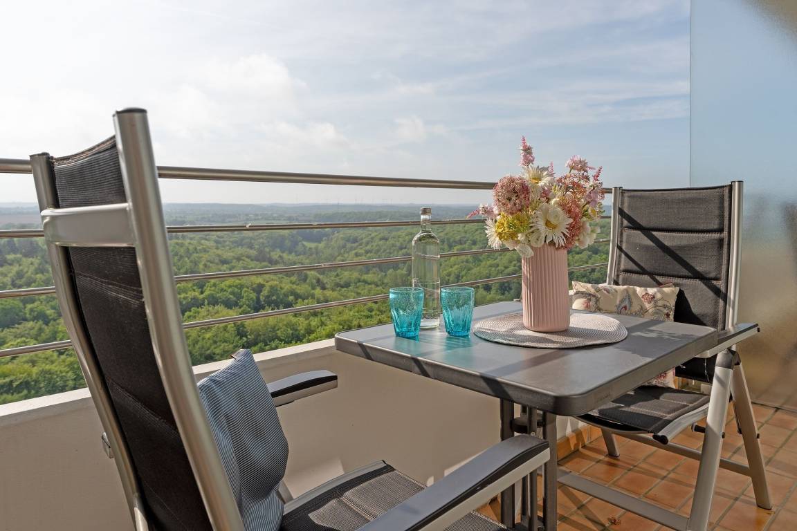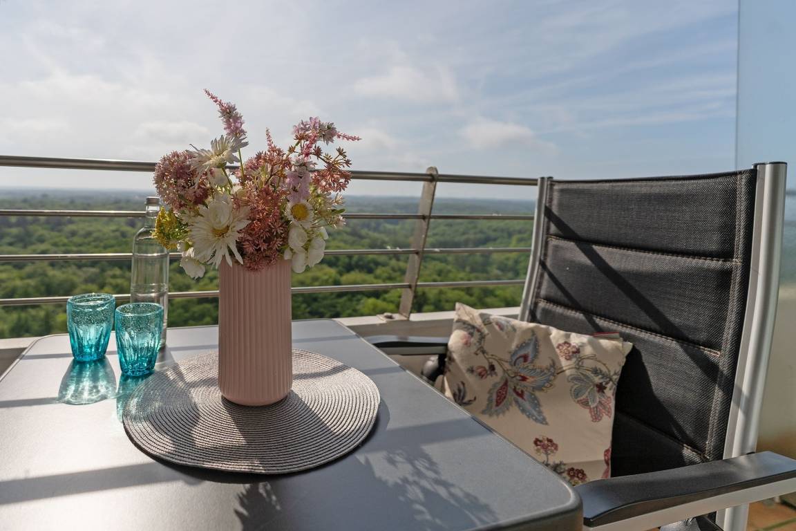 Charmante 1-Zimmer-Ferienwohnung (ca. 42 m²) in Timmendorfer Strand im 24. Stock mit Balkon und Fernblick für bis zu 2 Personen.